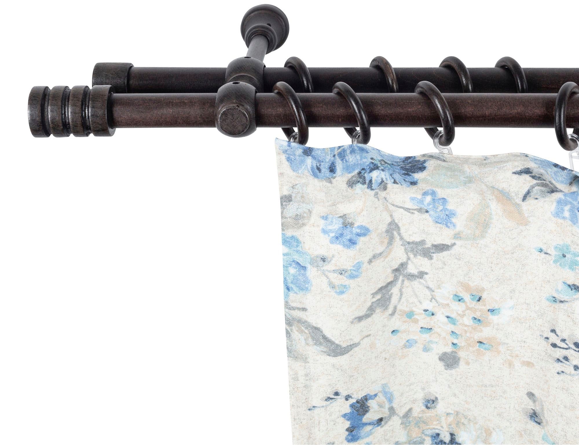 Vorhanggarnituren aus Massivholz von SN Deco GROUP mit einem Durchmesser von 28 mm in 2-läufiger Ausführung.