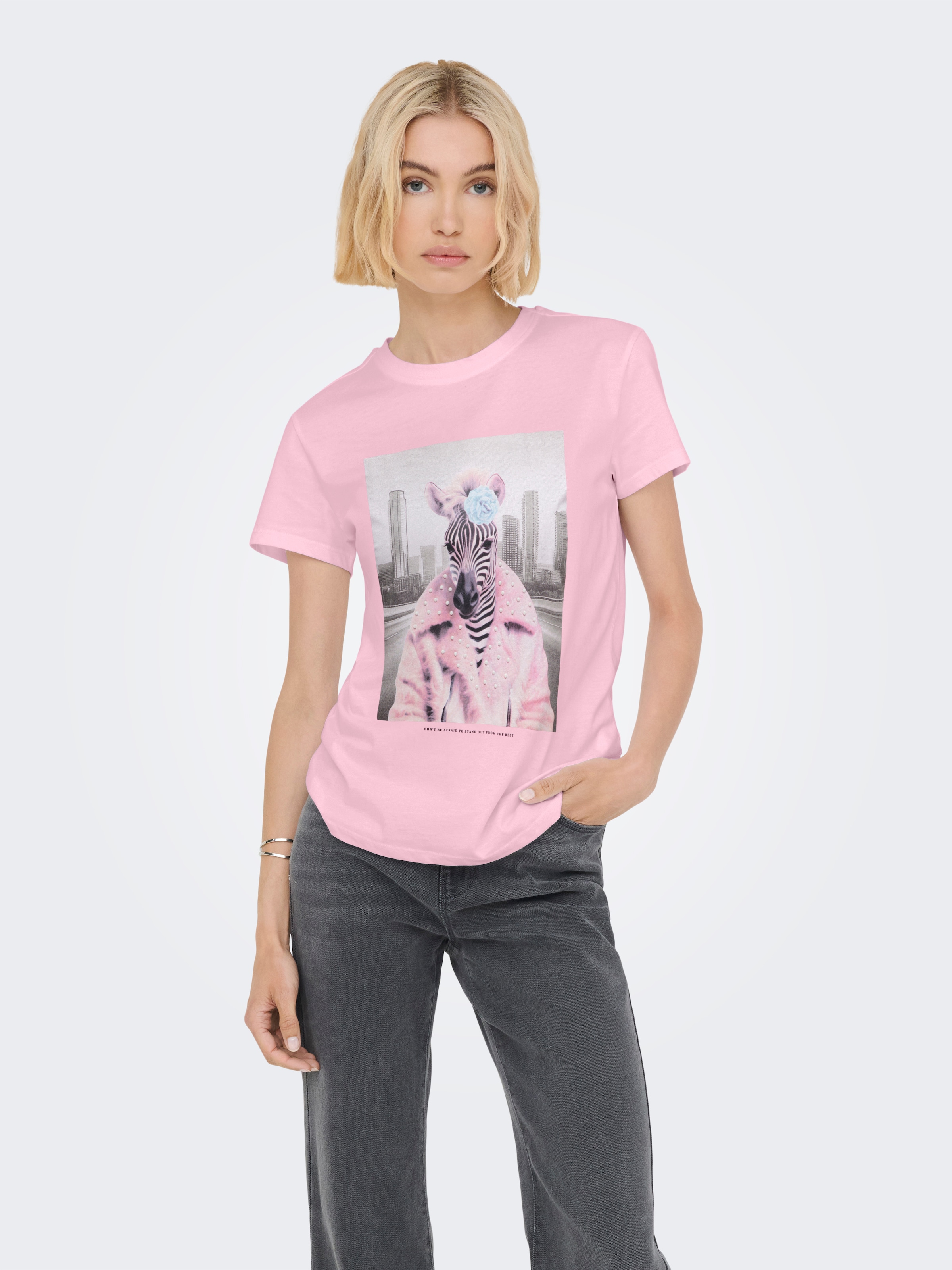 Aktuelles Damen-Kurzarmshirt der Marke JDY. Mit einem normalen Schnitt. . Dank des elastischen Jerseystoffs fällt das Oberteil weich und ist bequem.