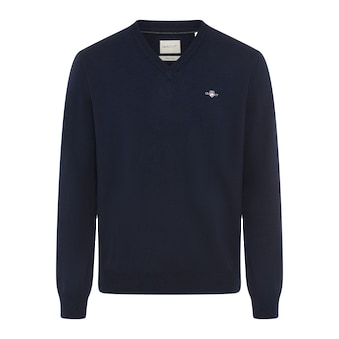 Klassischer Herren-Strickpullover der Marke Gant. Mit einem normalen Schnitt. Die Ärmel sind lang. Das Oberteil ist besonders bequem und wärmt durch die Strick-Qualität.
