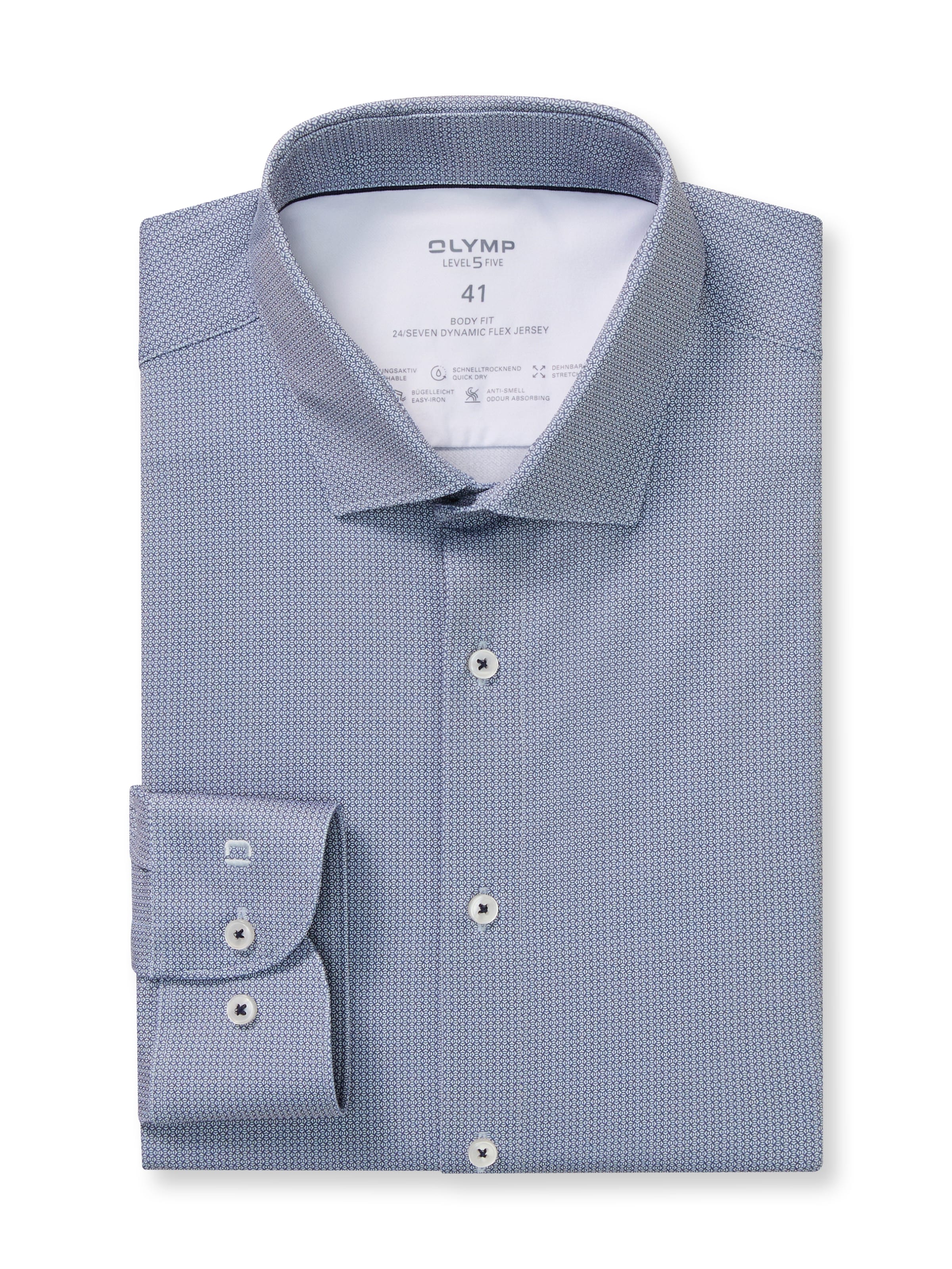 OLYMP Langarmhemd »24/Seven - Level Five« Jerseyhemd, Businesshemd, body fit, New York Kentkragen