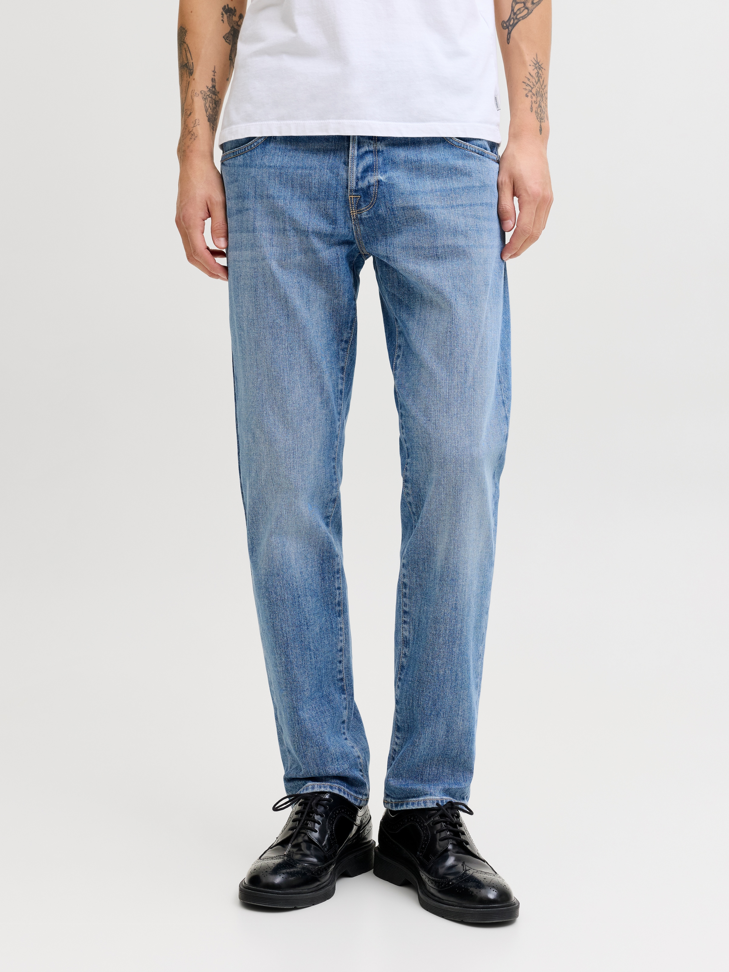 Lässige Herren-Tapered-fit-Jeans der Marke Jack & Jones. Mit lässig geschnittenem Hosenbein und klassischer Leibhöhe. Verziert mit einem Markenlabel. Kombinierbar für lässige Freizeitslooks. Die Hose ist durch den unempfindlichen und robusten Jeansstoff sehr pflegeleicht.