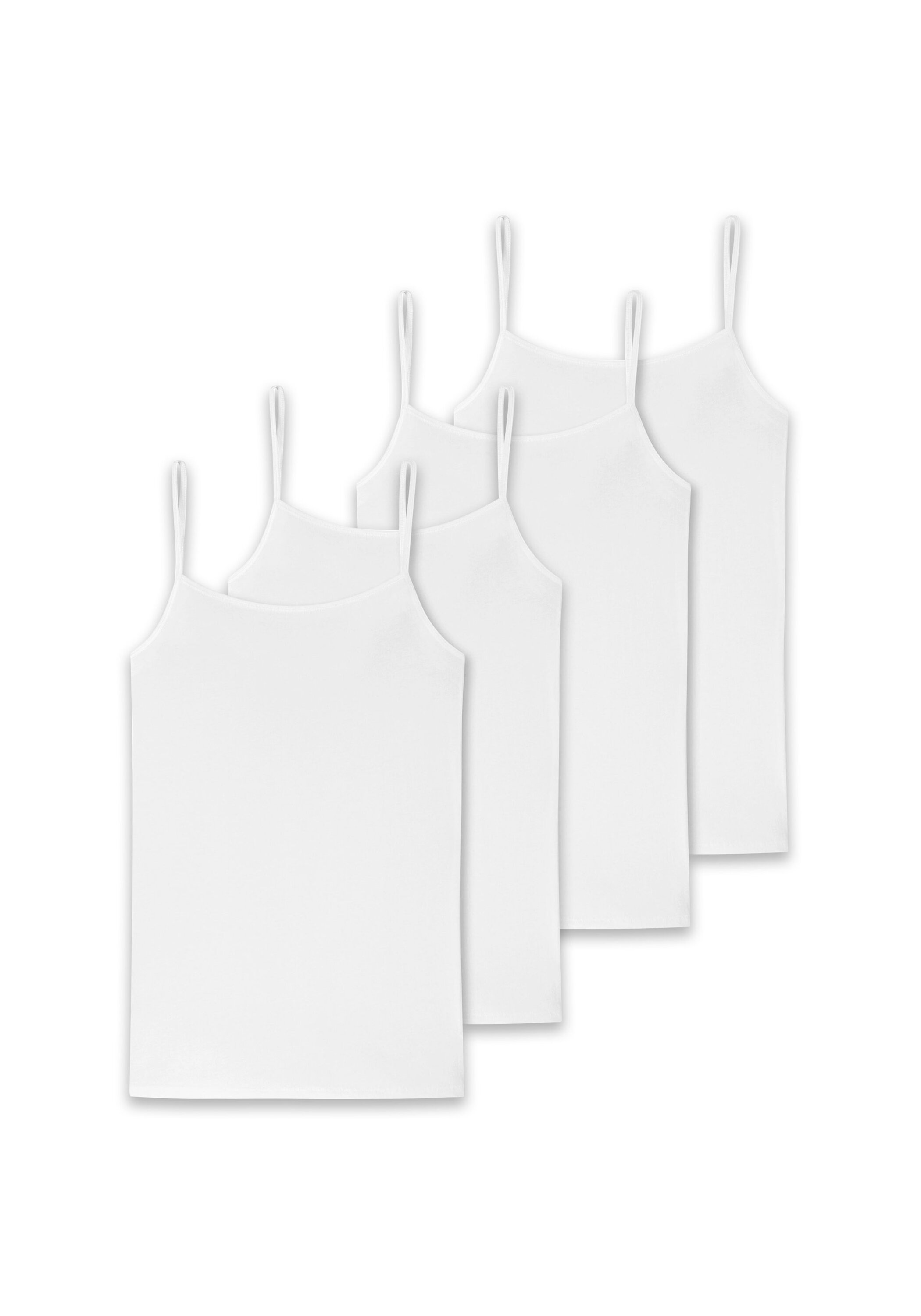 Spaghettitop von der Marke SCHIESSER im preisgünstigen Viererpack. Weiche, elastische Single Jersey-Qualität für ein angenehmes Tragegefühl. Ideal als Unterzeih-Shirt.