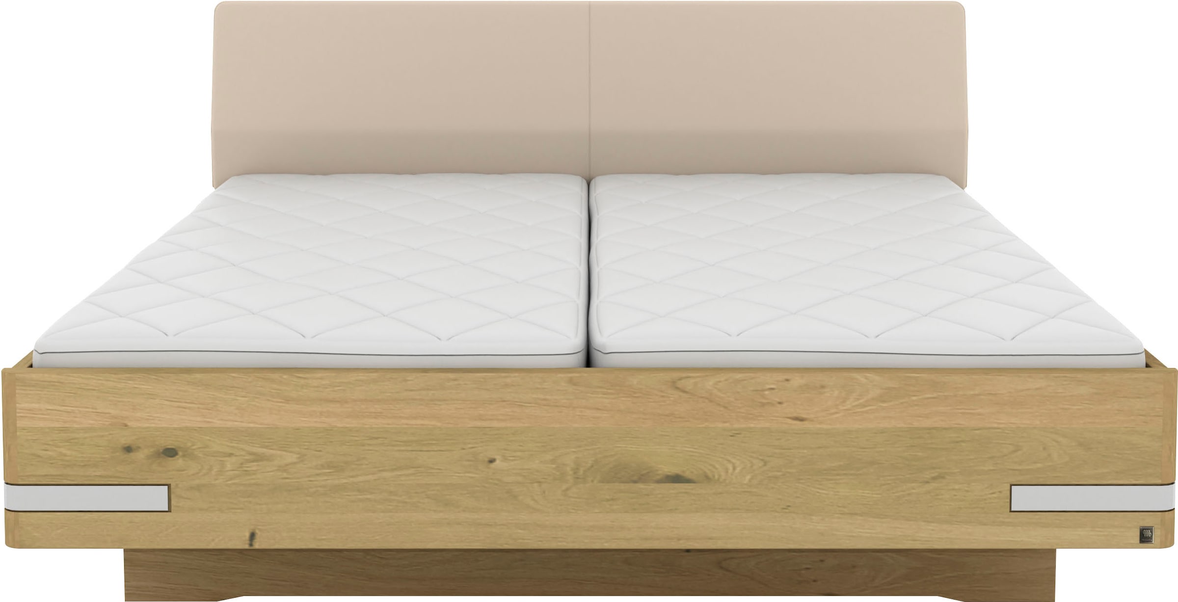 - Kopf- und Fußteil Bianco-Eiche massiv, Seiten und Untergestell in Bianco-Eiche-Nachbildung