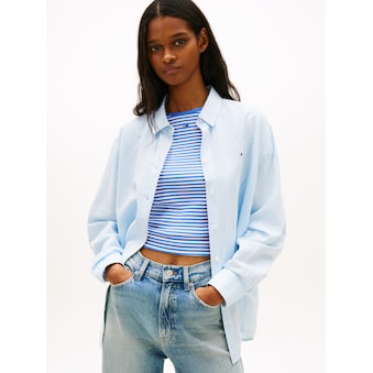 Klassische Damen-Jeansbluse der Marke Tommy Jeans. Mit einem normalen Schnitt. Die Ärmel sind lang. Außerdem hat die Bluse eine Knopfleiste. Durch die weiche Baumwollmischung ist das Oberteil besonders bequem.