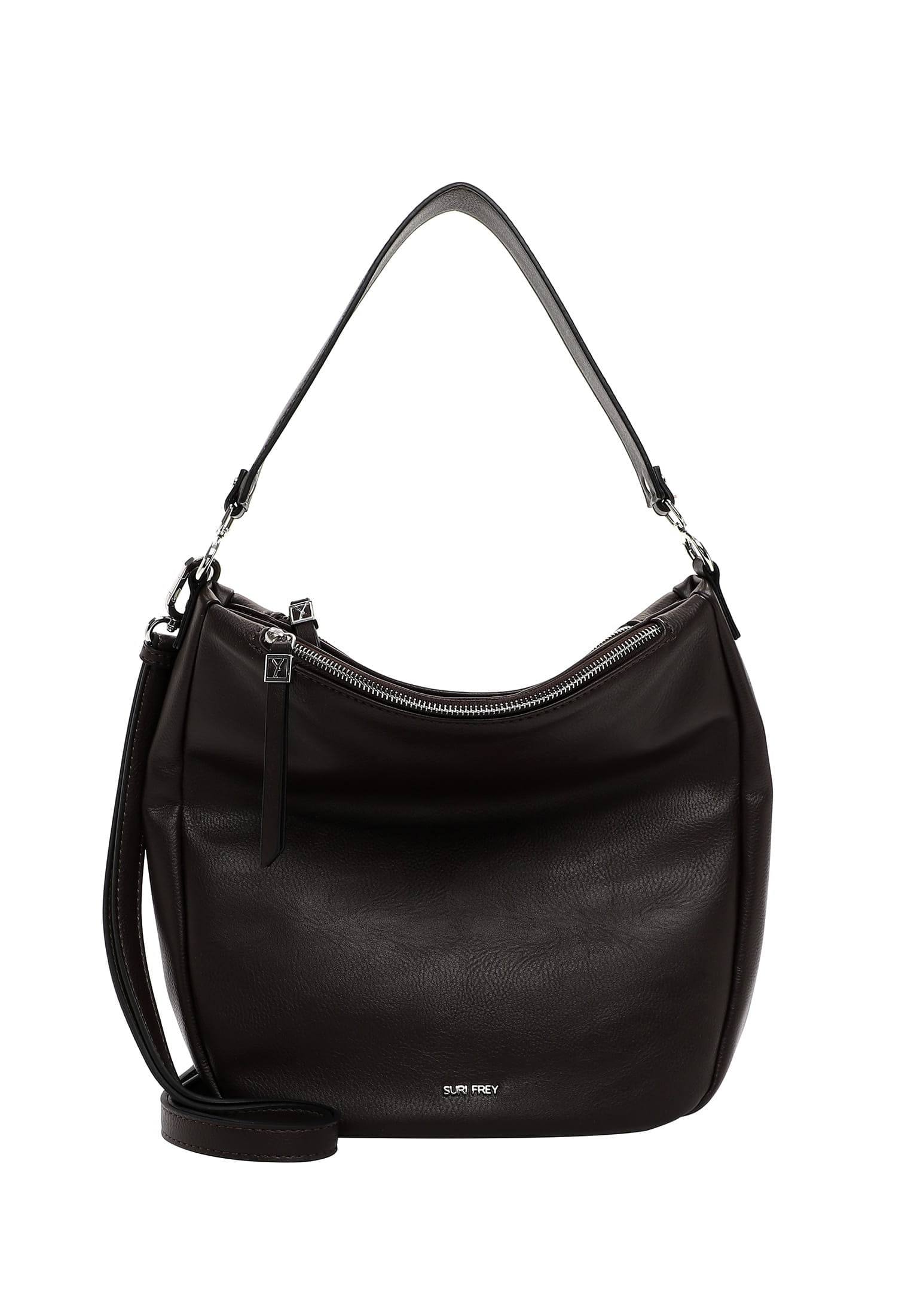 Persönlichkeit zeigen - mit SURI FREY Eine Handtasche ist wie eine gute Freundin, sie lässt einen nie im Stich und man kann sich hundertpro auf sie verlassen. SFY Abbey ist der wunderschöne Beutel in Uni-Design mit Single Lettering, der echte Persönlichkeit ausstrahlt. Ob für Büro, Uni oder in der Freizeit - mit ihm lässt sich einfach jedes Abenteuer bestreiten. Gefertigt ist das Modell, das sich mit einem Magnetdruckknopf verschließen lässt, aus Feinsynthetik. Durch das Material ist es angenehm im Griff. Die Echtleder-Optik und das Uni-Design sind fein gearbeitet und verleihen dem Beutel einen edlen Look. Die tollen Accessoires von SURI FREY stehen für Lebenslust, Freiheit und Offenheit - genau das, was selbstbewusste Frauen ausstrahlen. Ordnung ist das halbe Leben. Ein übersichtliches Hauptfach sind in der Tasche integriert. Ein Reißverschluss-Fach auf der Rückseite sorgt für zusätzlichen Stauraum und erlaubt den einfachen Zugang zu Dingen, die man immer griffbereit haben möchte. Für alle, die eine weiche Haptik lieben - SFY Abbey ist angenehm anschmiegsam. Einen besonderen Akzent setzt Single Lettering. Über der Schulter ist dieses Modell dem abnehmbaren Tragegriff zu tragen. Viel Platz für alles, was man als Frau so mit sich herumträgt, bietet der Beutel.