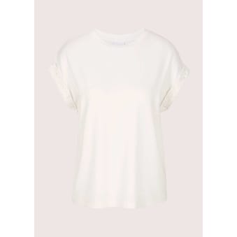 Das trageangenehme Naturgarn des Shirts erhält durch seine zart schimmernde Oberfläche eine edle Optik und punktet mit raffinierten Details. Ein Knoten-Effekt am Rundhals-Ausschnitt und geraffte Seitenpartien machen es zum echten Hingucker. Die bequeme Jersey-Qualität ist mit langen, schlanken Ärmeln gearbeitet und kann von lässig bis elegant kombinert werden.