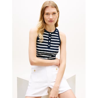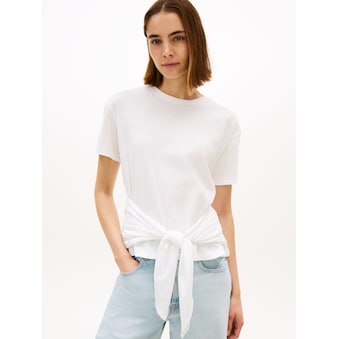 Kombistarkes Damen-Kurzarmshirt der Marke Tommy Hilfiger. Mit einem anliegenden Schnitt. Außerdem hat das Shirt mit Knöpfen. Durch die weiche Qualität des Single Jerseys ist das Oberteil angenehm zu tragen.