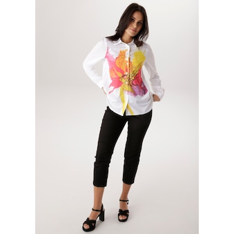 Geometrisch überzeugende Bluse von Aniston SELECTED mit floraler Musterung und Punkten. Bluse mit Hemdkragen und durchgehender Knopfleiste. Lässig geschnittene Hemdbluse mit Bordürendruck an den langen Ärmeln. Länge in Gr. 36 ca. 62 cm. Aus weichfallender Viskose. Maschinenwäsche.