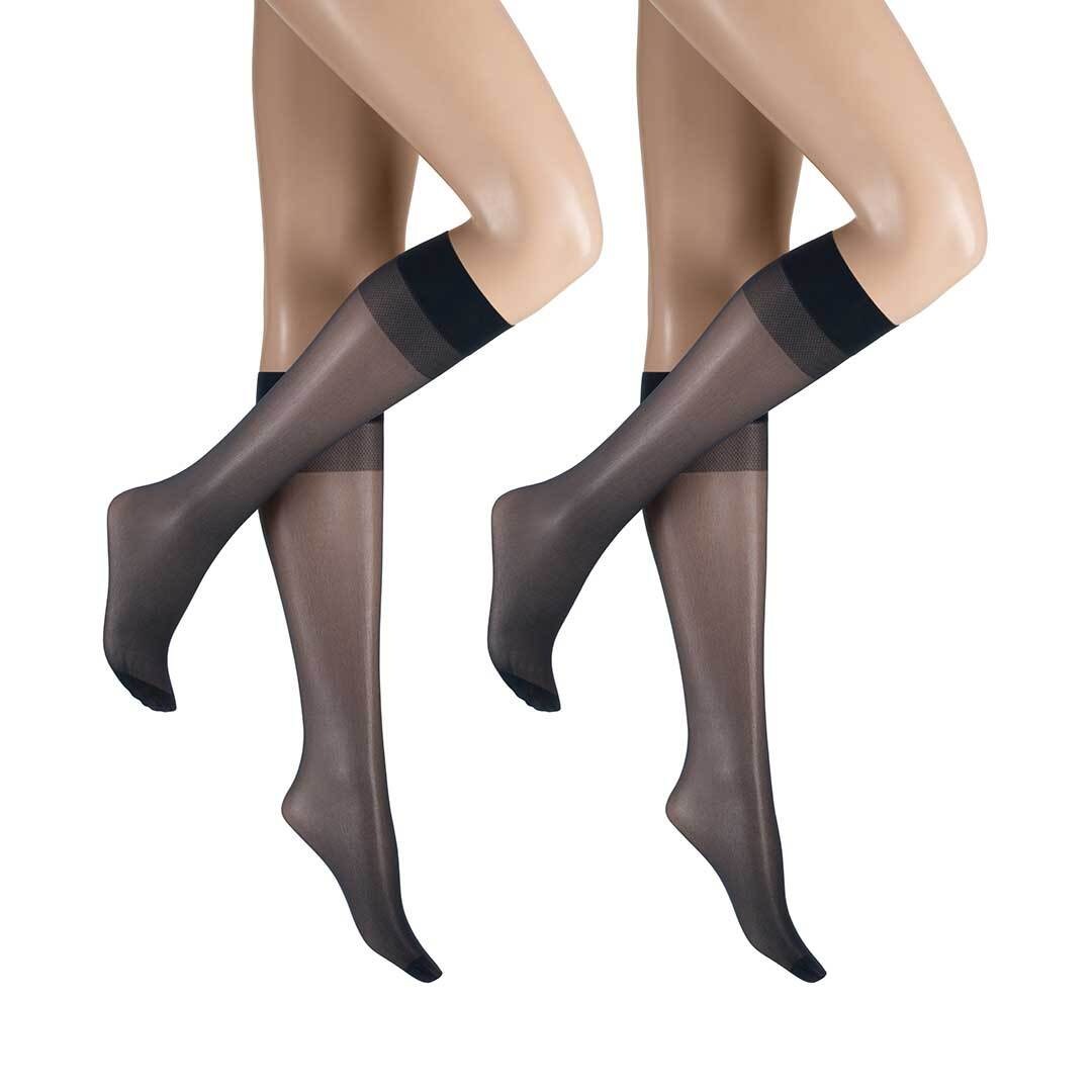 HUDSON LILLY PUT 20, die Kniestrümpfe im Doppelpack zum attraktiven Sparpreis. Das hochelastisches Helanca-Garn verleiht eine individuelle Passform von Größe 35-41. Die Kniestrümpfe in 20 DEN Optik erhalten Sie in einer praktischen Box, die auch in Ihrer Handtasche Platz findet. Die transparent verstärkte Spitze mit Maschenstopp und der 2-Zonen-Komfortbund verwöhnt Sie mit einem hohen Tragekomfort.
