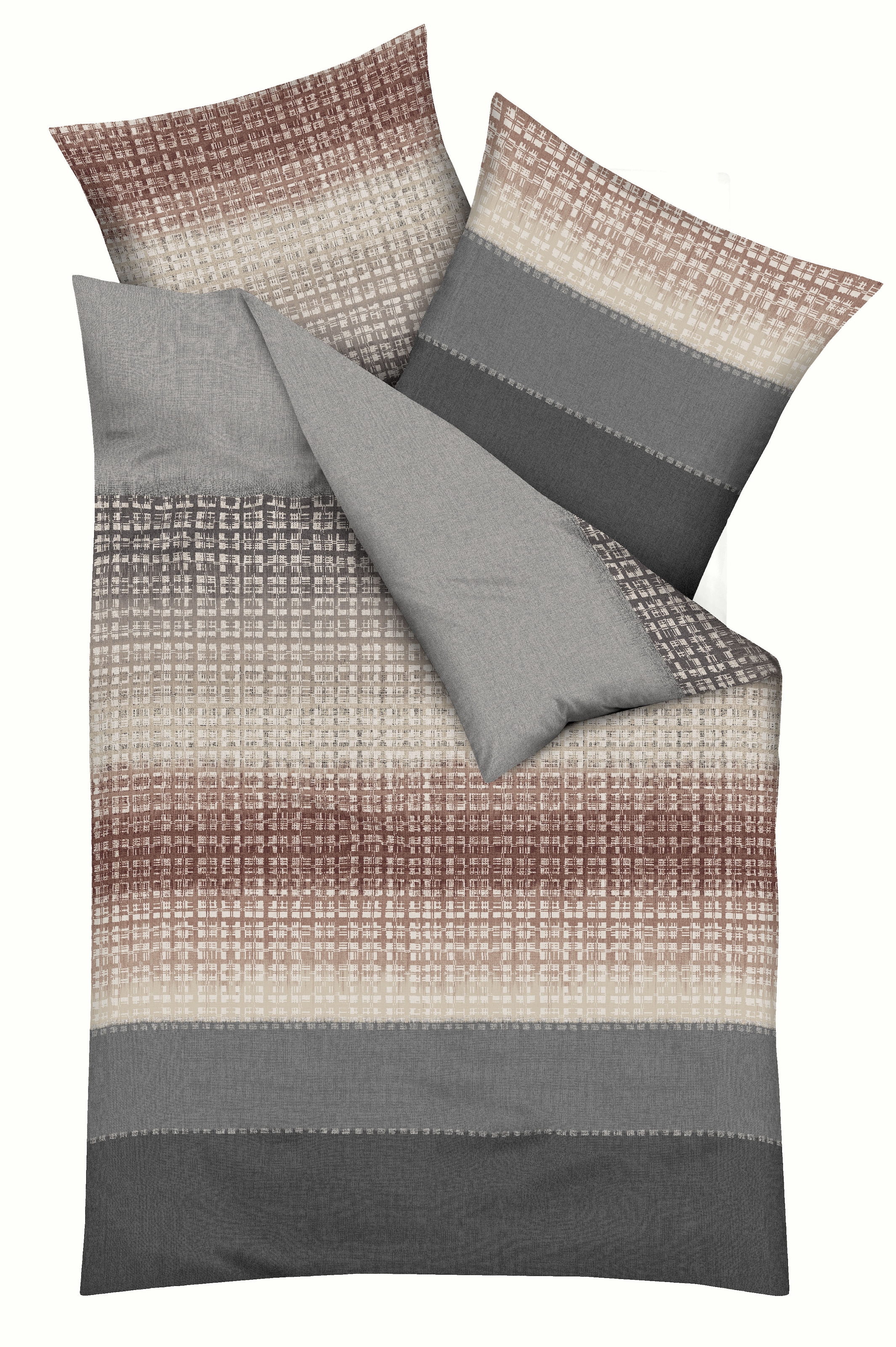 Dessin Quinto aus dem Hause Kaeppel. 2 teilige Mako-Satin Bettwäsche aus 100% Baumwolle mit Reißverschluss.Waschbar auf 60°.