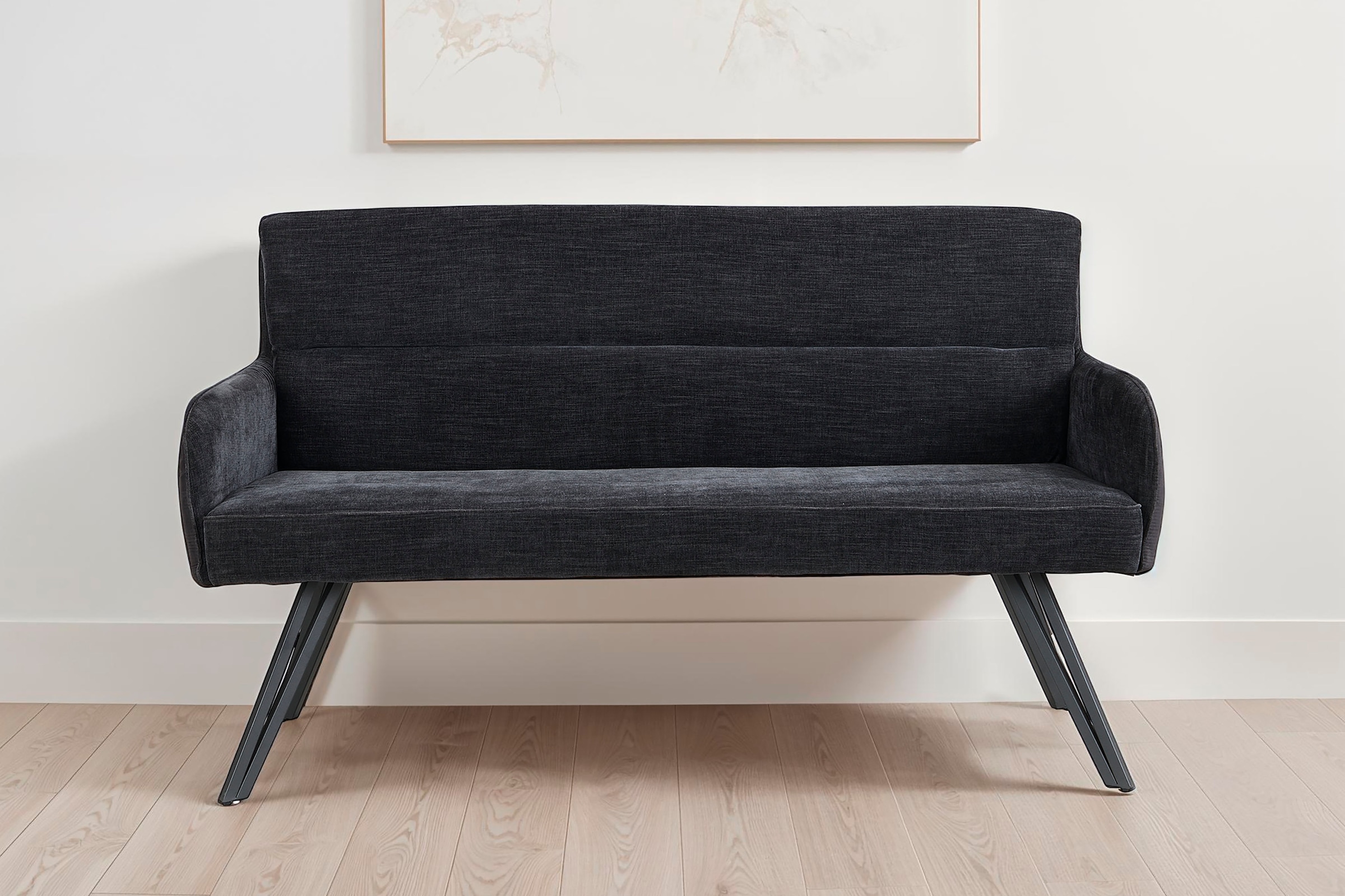 - Ein innenliegendes Metallgestell gibt der Bank ihre Stabilität und garantiert zusammen mit den schwarzen Duo - Metallbeinen inkl. einstellbaren Fußgleitern eine hohe Lebensdauer.