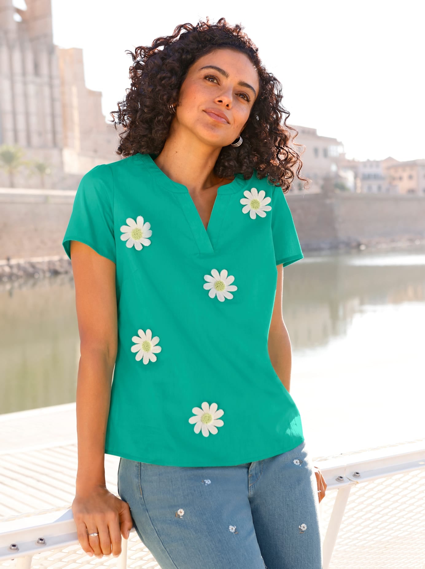 Lässige Schlupfbluse mit grafischem Druck und femininer Raffung. Die figurumspielende Passform sorgt für einen bequemen Sitz und unterstreicht den entspannten Casual-Stil - ideal für stilvolle Alltags-Looks.