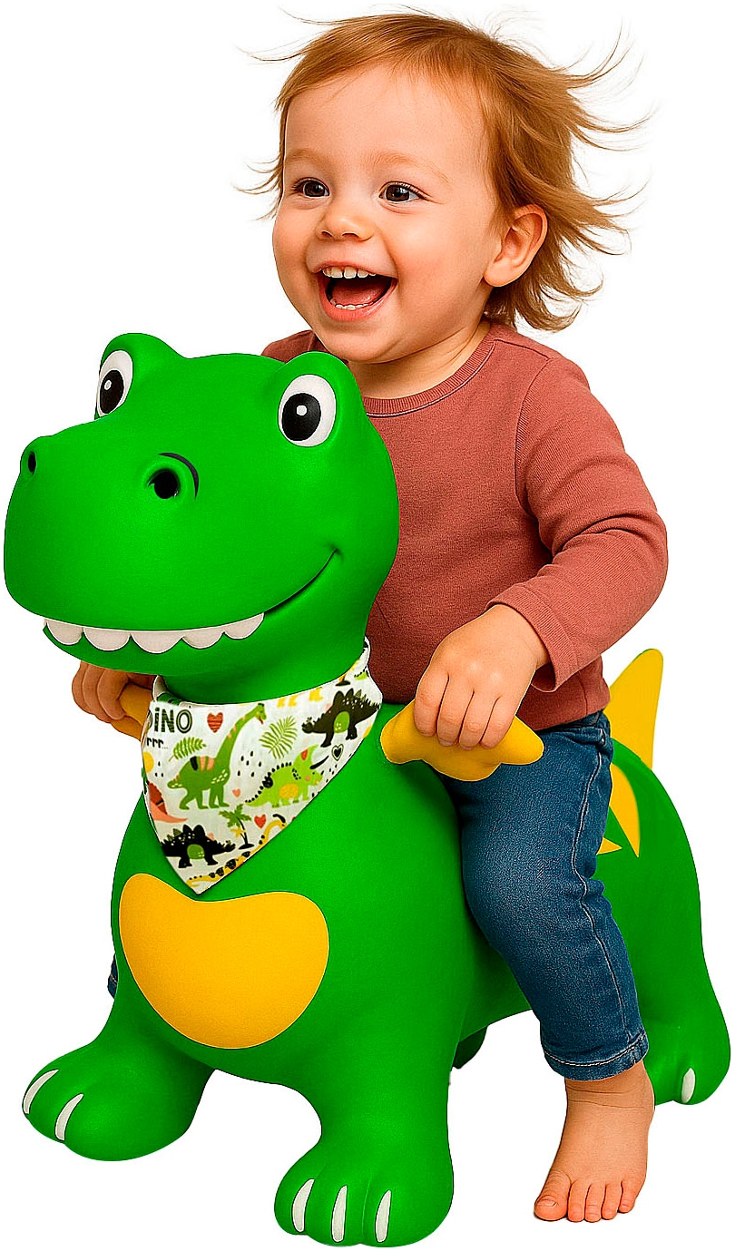 Im umfangreichen Hüpftierprogramm von JAMARA sorgt jetzt ein besonders charmantes Highlight für Begeisterung: der formschöne Hüpfdino mit kleinen Flügeln. Dieses liebevoll gestaltete Hüpftier erobert mit seinem freundlichen Gesichtsausdruck und dem exklusiven handbemalten Design im Sturm die Herzen der Kinder. Der kleine Dino verspricht nicht nur stundenlangen Hüpfspaß, sondern unterstützt gleichzeitig spielerisch die Entwicklung des Gleichgewichtssinns und der motorischen Fähigkeiten. Die Flügel dienen dem Kind als stabile Haltegriffe und sorgen für einen sicheren Sitz auf dem neuen Spielgefährten. Dank seiner ergonomischen Form ist der Dino besonders kindgerecht gestaltet und überzeugt durch hohe Stabilität und Belastbarkeit - ideal für drinnen und draußen, ob im Kinderzimmer, im Garten oder auf der Terrasse. Das abnehmbare, bedruckte Halstuch verleiht ihm eine zusätzliche persönliche Note, während das robuste, pflegeleichte Material selbst wildem Hüpfen problemlos standhält. Mit der beiliegenden Ballpumpe kinderleicht aufzublasen, wird der Dino im Handumdrehen einsatzbereit. Als neues Mitglied neben Pferd, Kuh, Lama oder Einhorn ist der kleine Hüpfdino ein echtes Highlight im JAMARA Hüpftierprogramm und bringt fröhliche Bewegung in jeden Spielalltag.