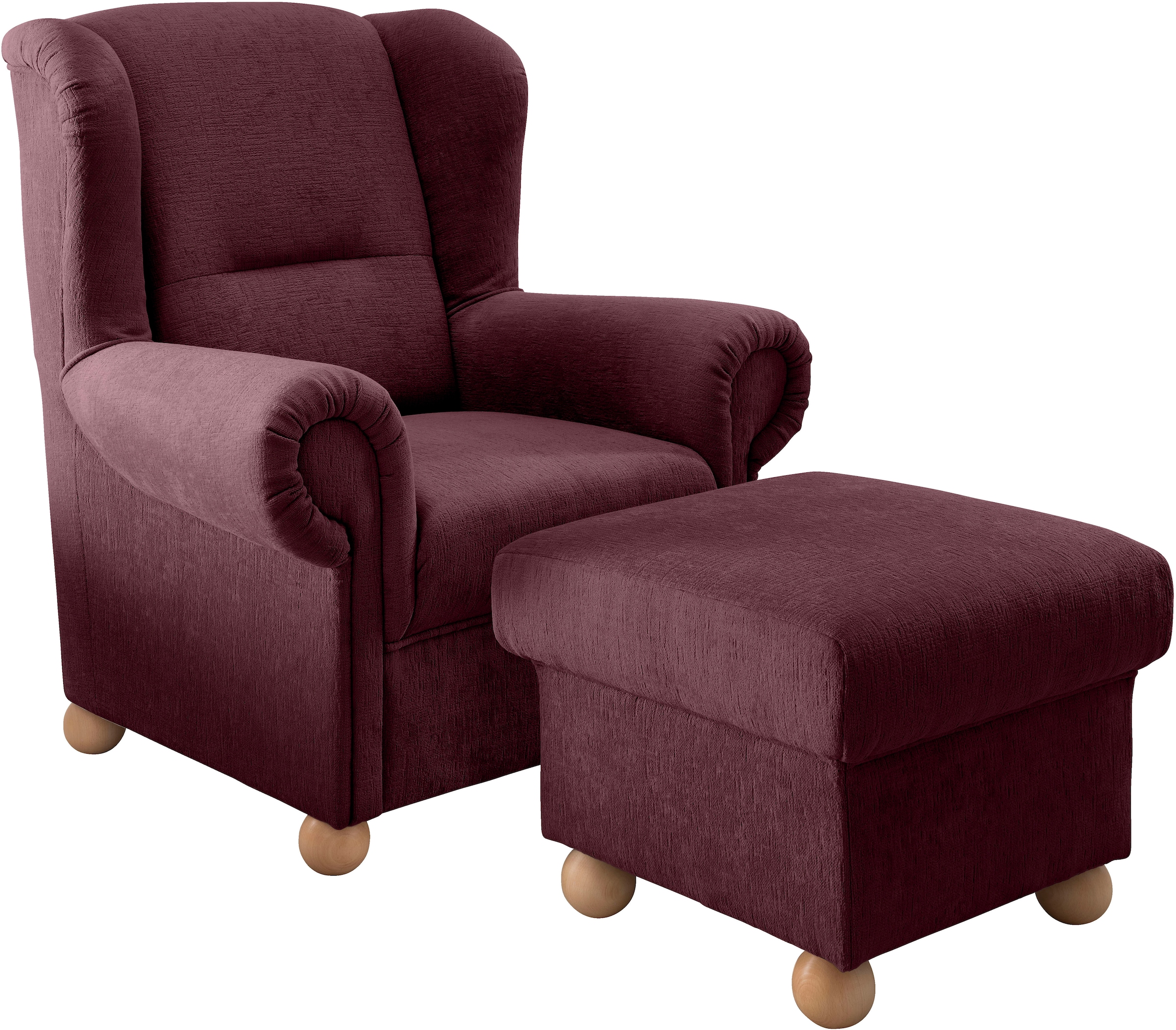 Set beinhaltet | Ohrenbackensessel und Hocker |