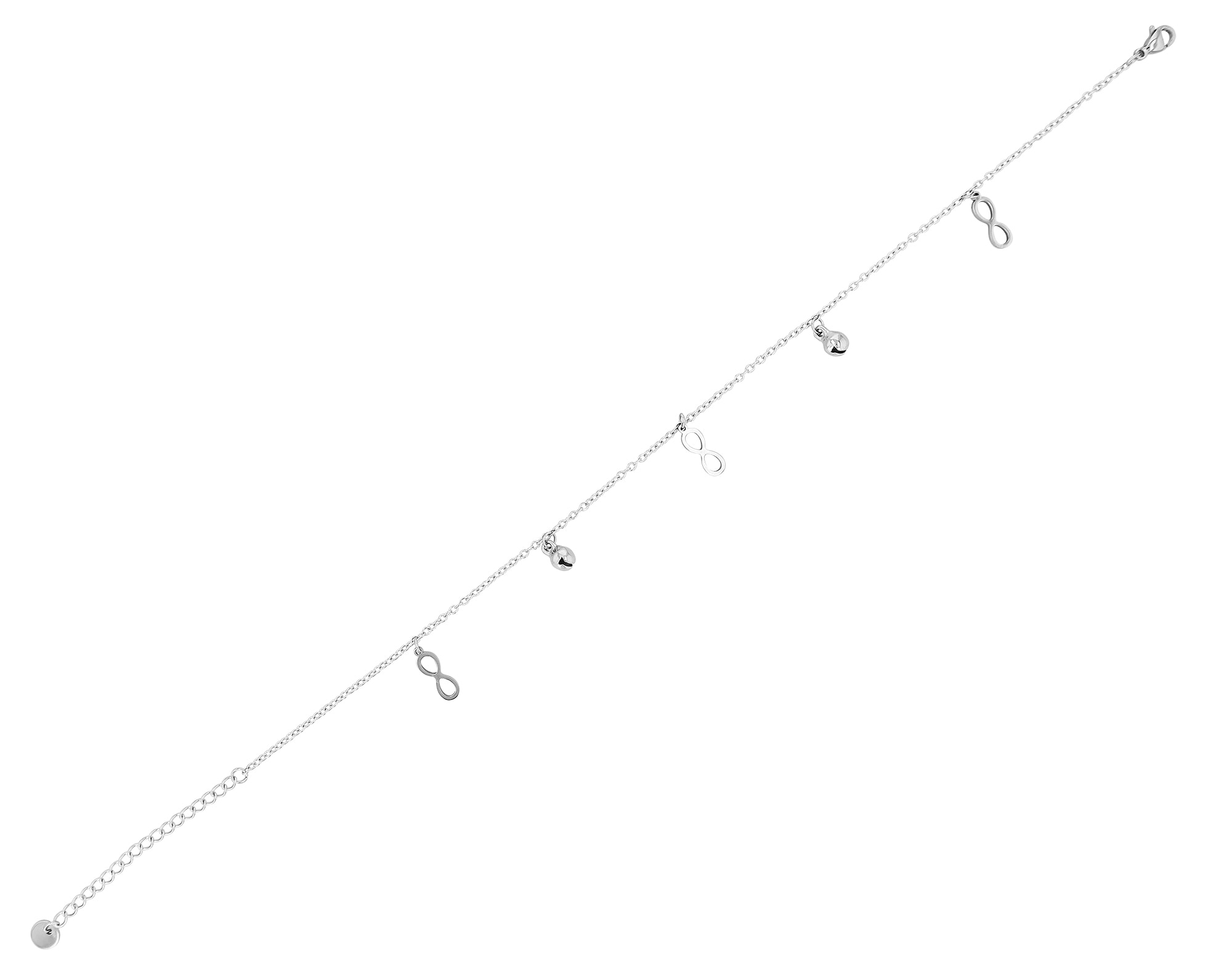 Fußkettchen "Dagny": Eine unwiderstehliche Kombination aus Qualität, Stil und Vielseitigkeit. Mit einem ansprechenden Design, der hochwertigen Verarbeitung und dem robusten Material wird es sicherlich die Aufmerksamkeit auf sich ziehen. Gefertigt aus robustem Edelstahl, in silber- oder goldfarben erhältlich, mit einer Länge von 24+5 cm und einer Breite von 2 mm bietet das Fußkettchen einen bequemen Sitz und ein angenehmes Tragegefühl.Das Besondere sind die charmanten Anhänger. Zwei Symbole schmücken diese Fußkette: Infinitysymbole und die Kugelanhänger. Das Infinity zeichen steht für Ewigkeit und Liebe, während die Kugelanhänger eine zeitlose Eleganz ausstrahlen.