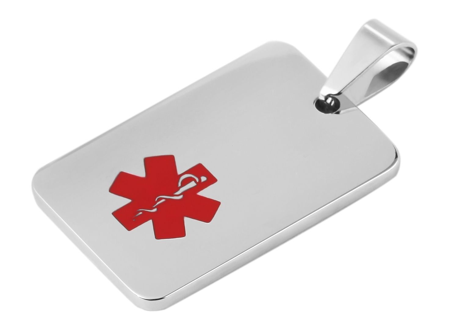 Der Gravuranhänger, für Gravuren aller Art, besteht aus dem Material Edelstahl und ist zusätzlich mit einer Ionenplattierung versehen. Diese Beschichtung trägt zu einer besseren Optik des Materials bei. Auffällig bei diesem Anhänger ist der traditionelle Stern mit dem Äskulapstab. Die Maße ergeben sich aus einer Länge von 30 mm, einer Breite von 20 mm und einer Stärke von 2 mm.