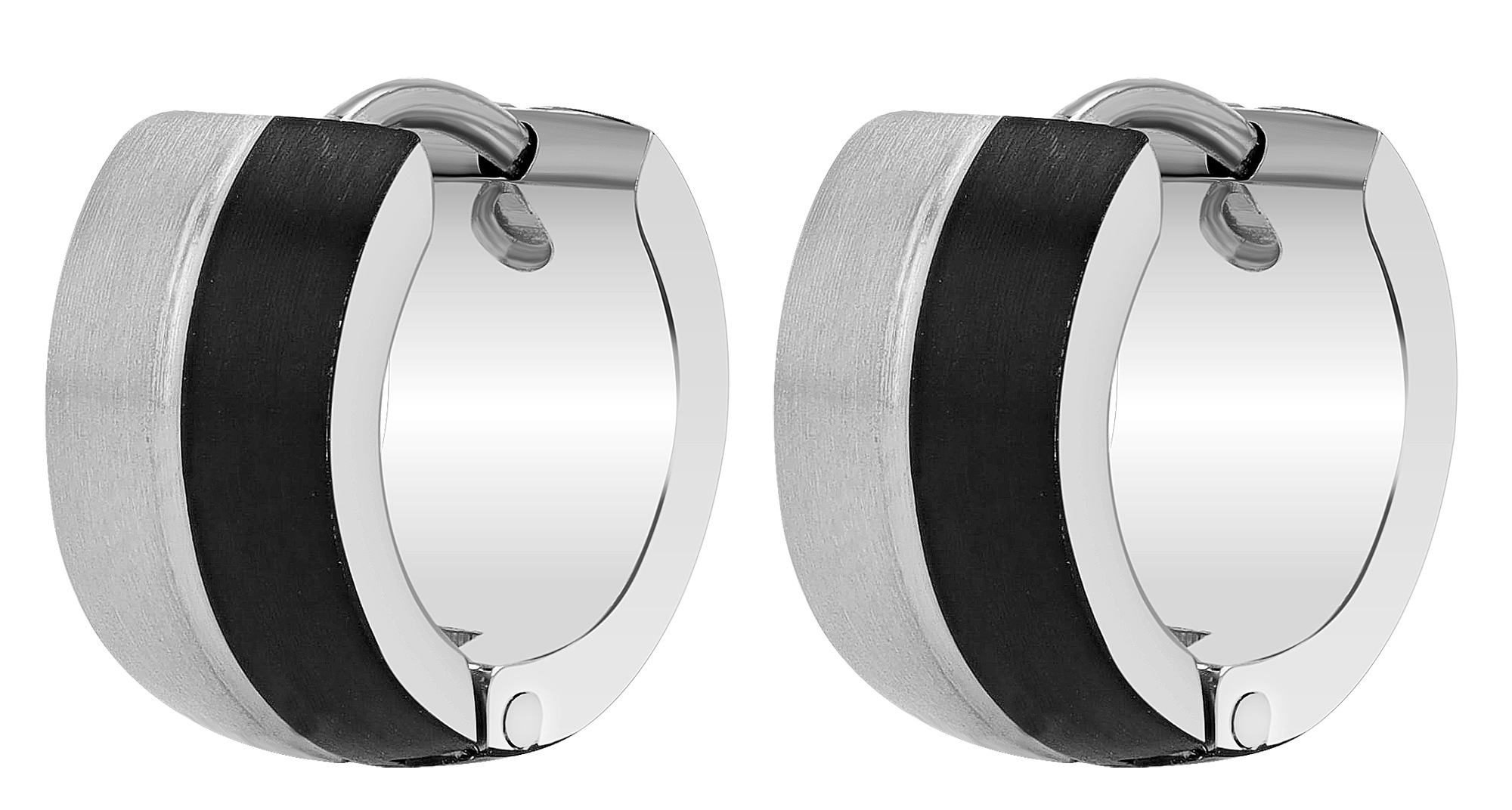 Die silberfarbigen Klapp-Creolen wurden aus Edelstahl gefertigt. Das Material ist rostfrei und steht für eine lange Lebensdauer. Der Ohrring ist in seiner Beschaffenheit matt und glänzend gehalten und kann zu einer Vielzahl an Outfits kombiniert werden. Highlight sind die je 2 mm breiten Streifen, welche sandgestrahlt, mit dezentem Glitzern den gesamten Ohrring verzieren im Wechsel mit drei jeweils 0,5 mm breiten, polierten Streifen. Durch den einfachen Edelstahl-Klappverschluss lassen sich die Ohrringe bequem am Ohrloch sichern. Die Creolen haben einen Durchmesser von 9 mm, eine Breite von 7 mm und eine Stärke von 2 mm.