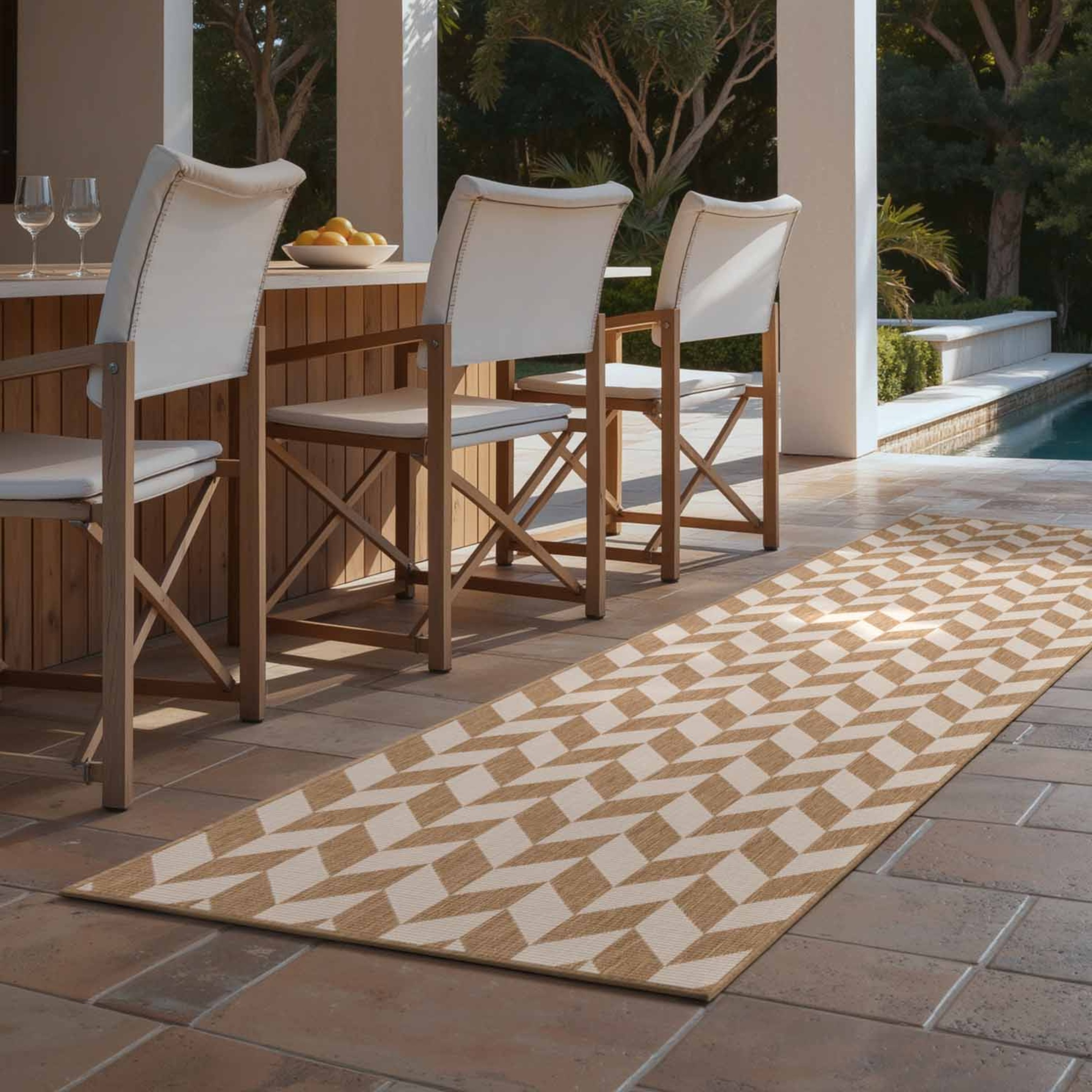 Hochwertig in Europa gefertigt, sind die flach gewebten Teppiche robust, wetterfest und ideal für den täglichen Einsatz. Die strapazierfähigen synthetischen Fasern machen sie besonders pflegeleicht und langlebig – ganz gleich, ob Sonne, Regen oder der Familienalltag sie herausfordert.