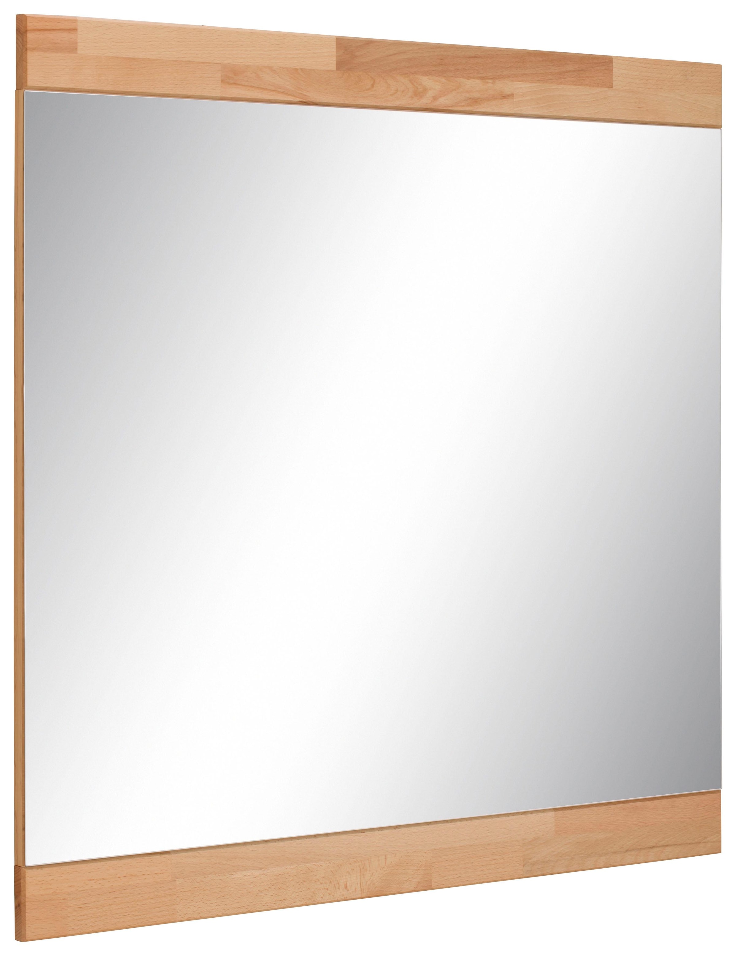 Moderner Spiegel. Hoch oder quer anzubringen. Mit Rahmen aus Massivholz.