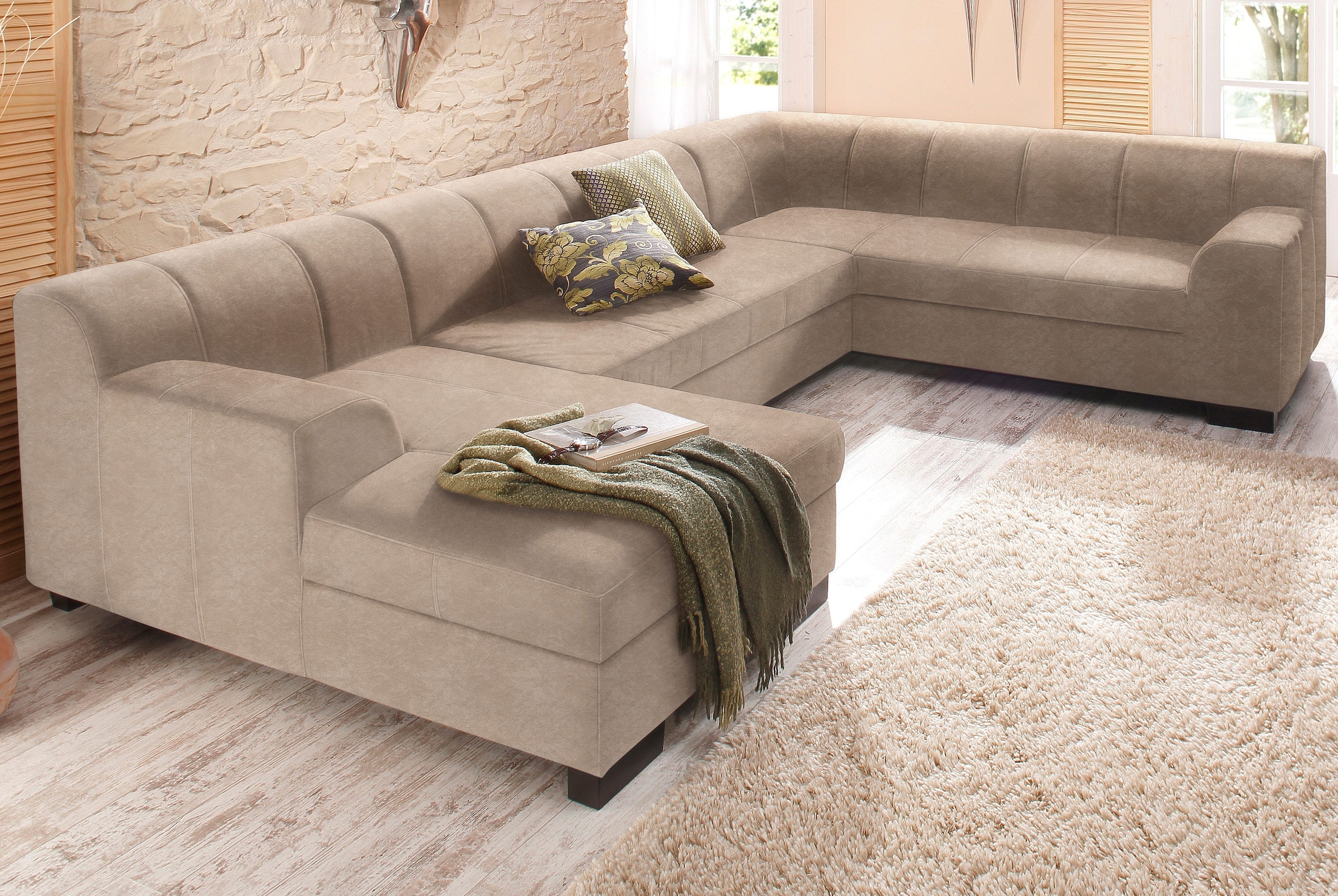 Home affaire Wohnlandschaft »Falk klare Linien, zeitlos und komfortabel, U-Form« mit Federkern und wahlweise mit Bettfunktion