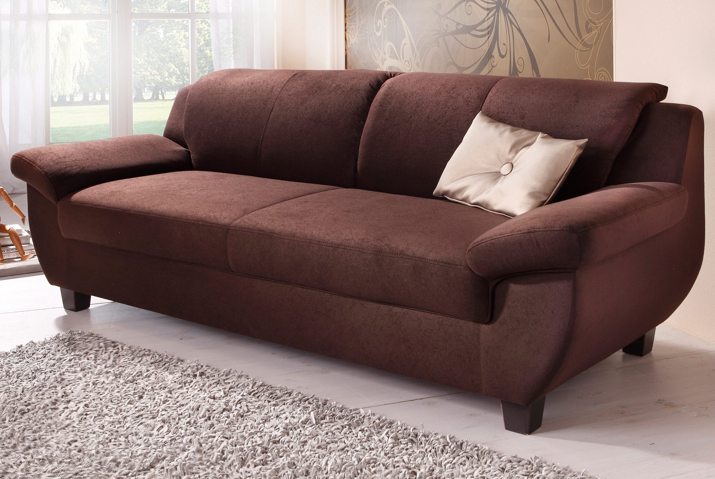 - Das Sofa mit stabilem Untergestell und hochwertiger Verarbeitung glänzt In pflegeleichten Mikrofaserbezug