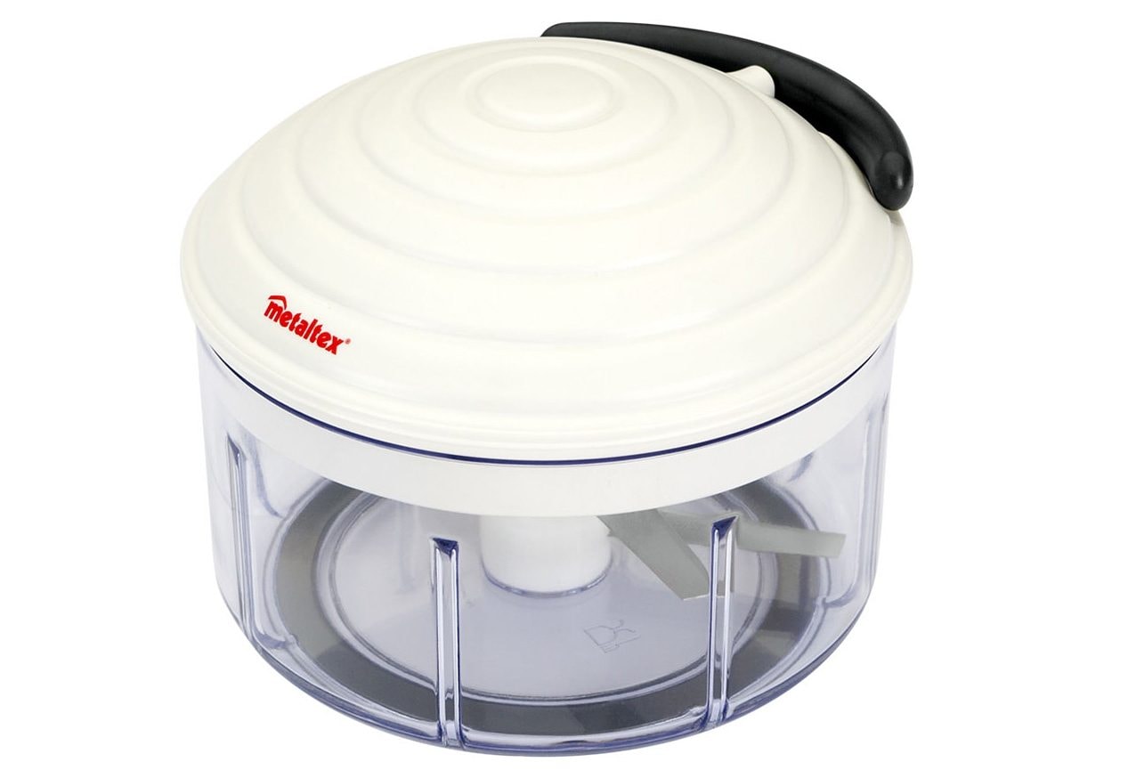 metaltex Zerkleinerer, »RoToMac«. METALTEX Zerkleinerer »RoToMac«. Die Revolution in der Küche! Dank des patentierten Klingen - und Zugmechanismus werden Gemüse, Obst oder auch Nüsse mit einfachen Zügen in den gewünschten Zustand gebracht. Ob grob geschnitten oder ganz fein geraspelt, je nach Anzahl der Züge kommt jeder auf das gewünschte Ergebnis. Für einen gleichbleibenden Schnitt, ohne Kraftaufwand. Mit rotierenden Klingen. Einfach zu bedienen mit dem rotierenden Zugmechanismus. Hochwertige Klingen aus rostfreiem Edelstahl. Mit Klingenschutz und Bedienungsanleitung. Ermöglicht das Mixen und Rühren von Suppen und Soßen. Fassungsvermögen von 0,9 Liter. Spülmaschinenfest.