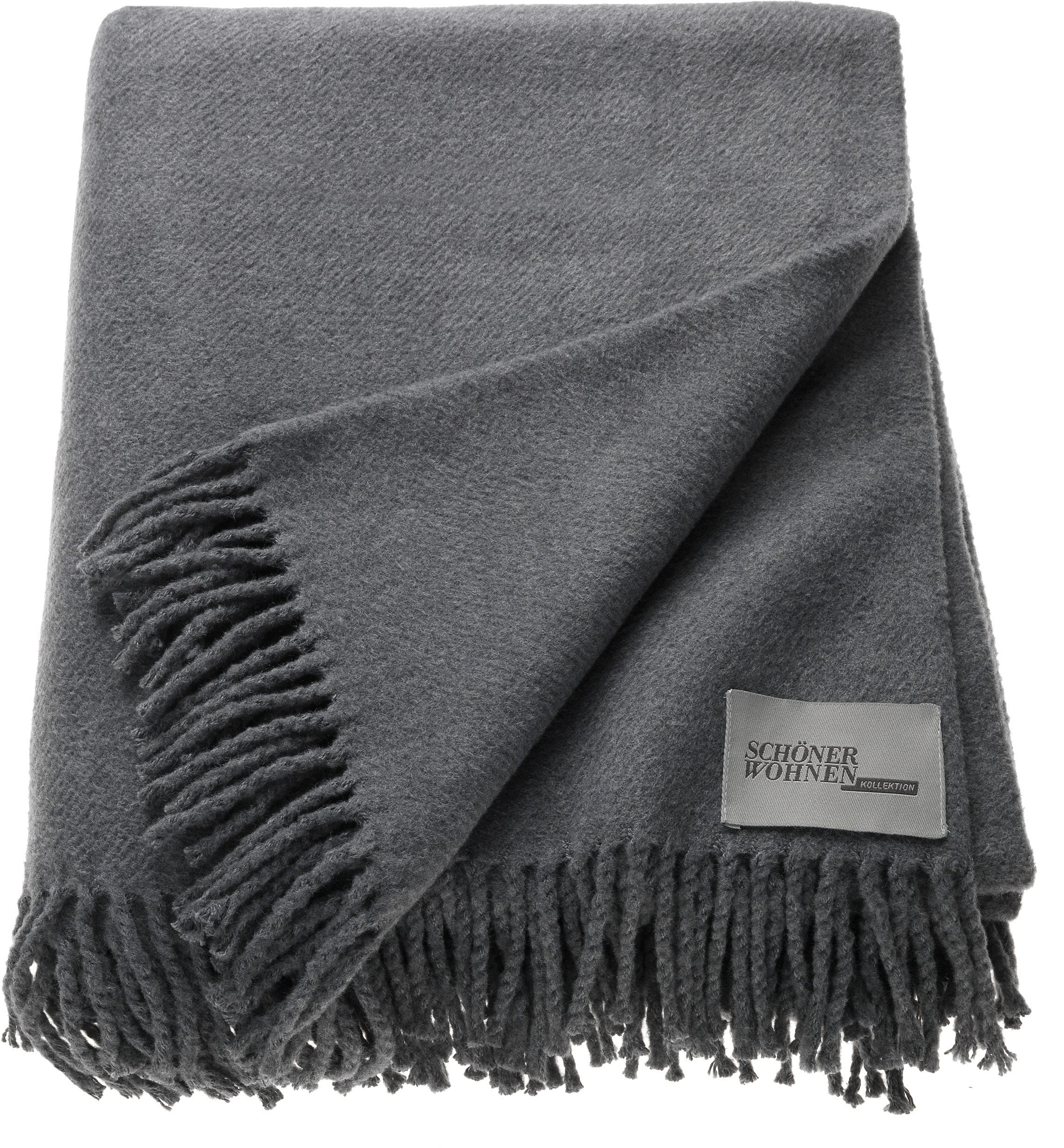 SCHÖNER WOHNEN-Kollektion Wohndecke »Basics« mit Fransen, Kuscheldecke