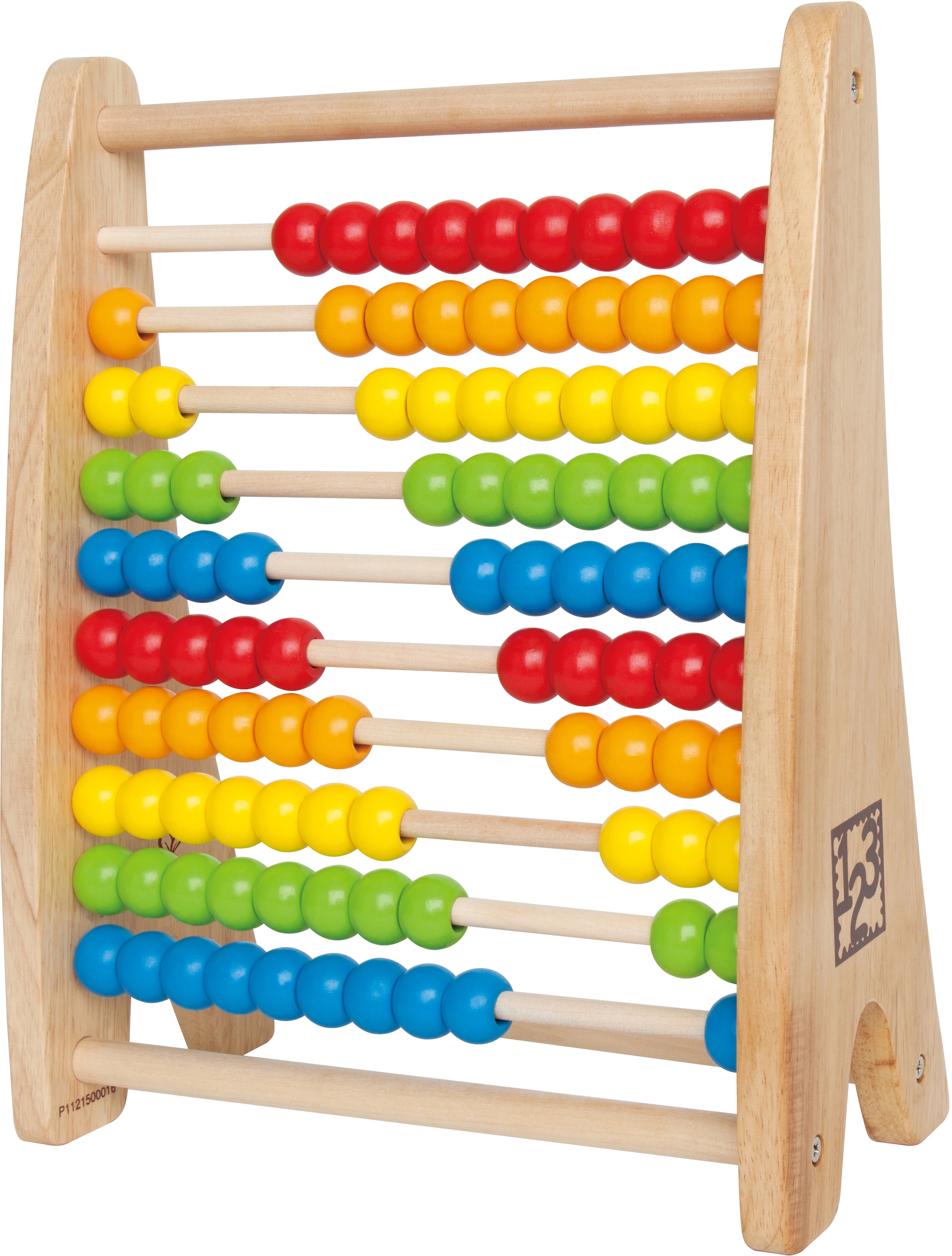 Mit dem »Regenbogen Abakus« tauchen Kinder zum ersten Mal in die Welt des Zählens ein. Viele bunte Perlen sind auf 10 Holzstreben angebracht und können von rechts nach links, sowie umgekehrt geschoben werden. So können die Kids laut mitzählen, wenn sie einzelne Kugeln verrutschen.