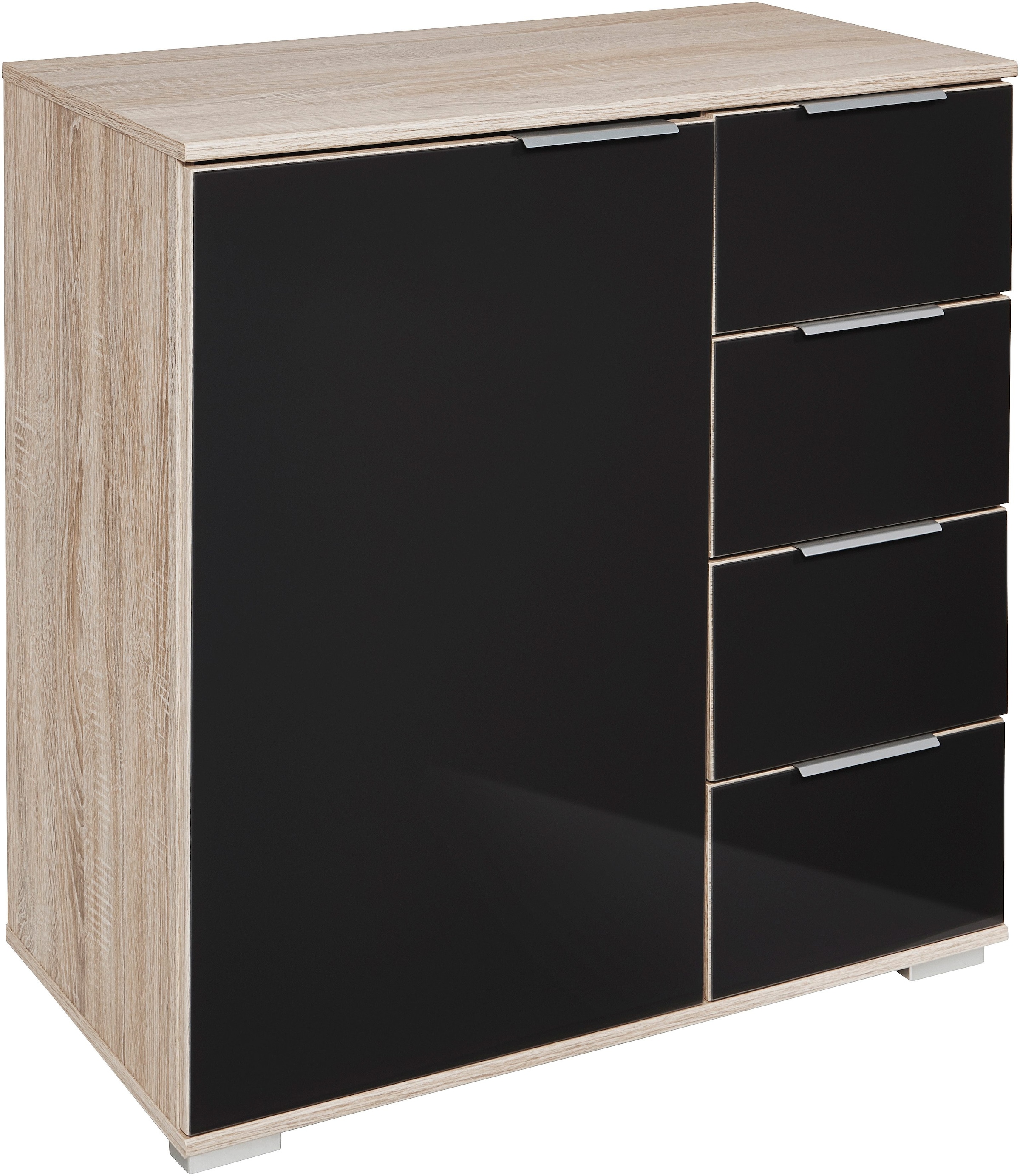 Set beinhaltet | Wunderschönes Schlafzimmer mit dekorativen chromfarbenen Ausleistungen. Pflegeleichte Kunststoffoberfläche. Innendekor Leinen grau. Beschläge Scharniere und Kleiderstangen aus Metall. Chromfarbene Griffleisten aus Metall. Set bestehend aus: