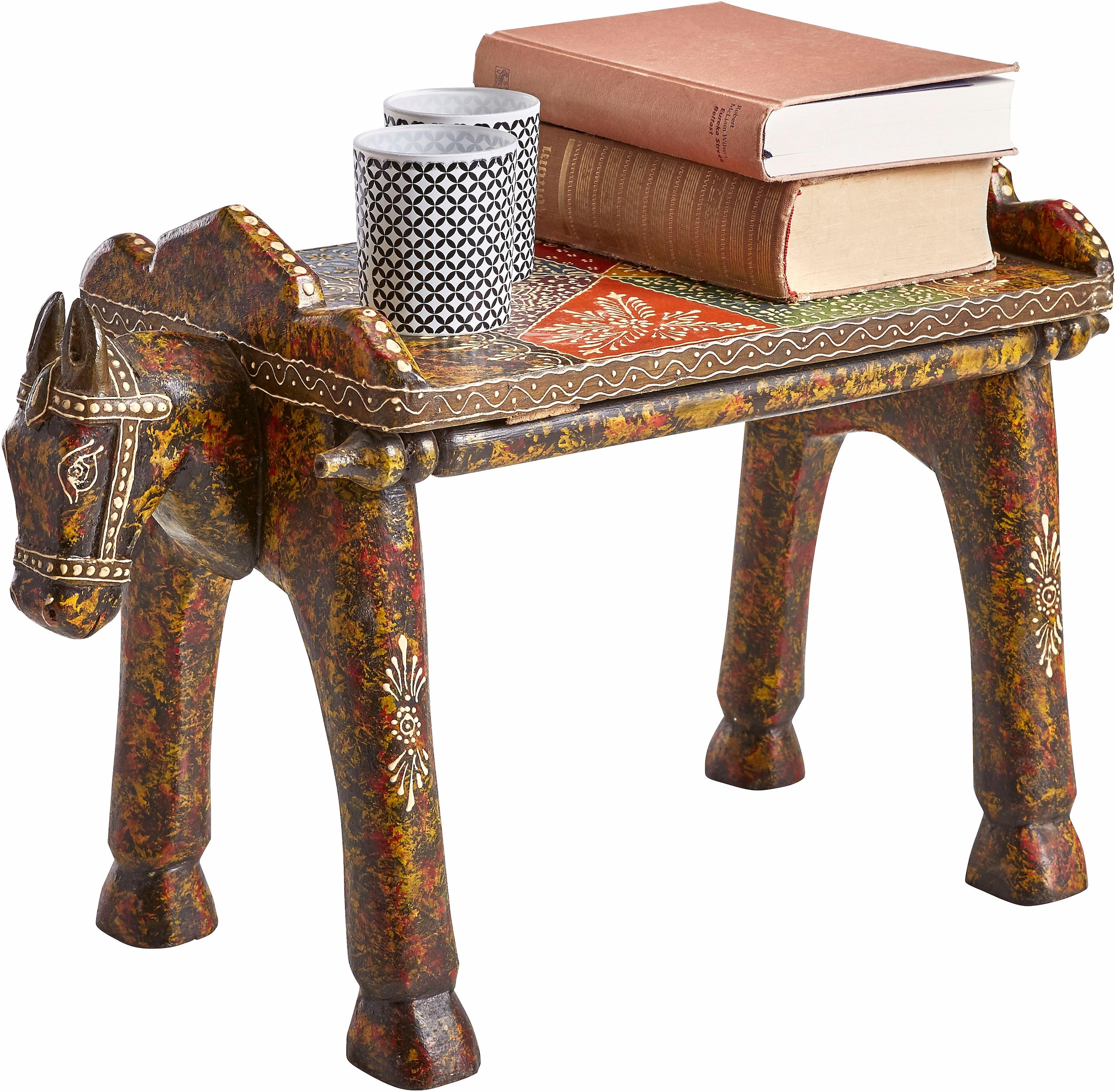 Wissenswertes  | Dieser toller Hocker wurde einem Pferd nachempfunden. Aus FSC-zertifiziertem, massivem Mangoholz bunt und aufwendig handbemalt. Tolle Verzierungen. Jedes Stück ein Unikat.       In folgenden Farben erhältlich: