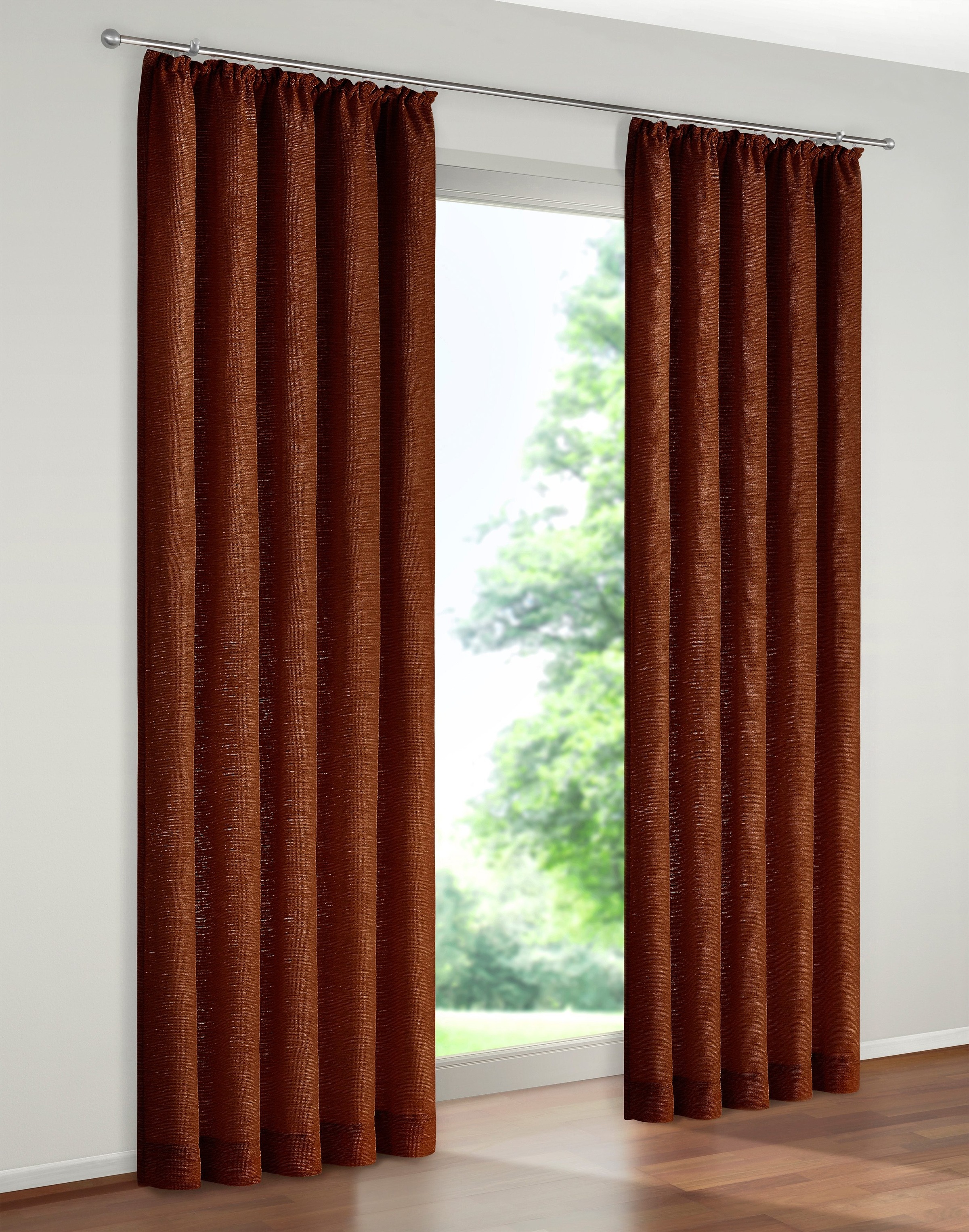 Hinweis Materialart | Chenillequalität bezeichnet einen Vorhangstoff, der aus voluminösem Garn gewebt wird. Das schwere Gewebe mit samtiger Oberfläche bietet sowohl Kälte- als auch Lärmschutz. |