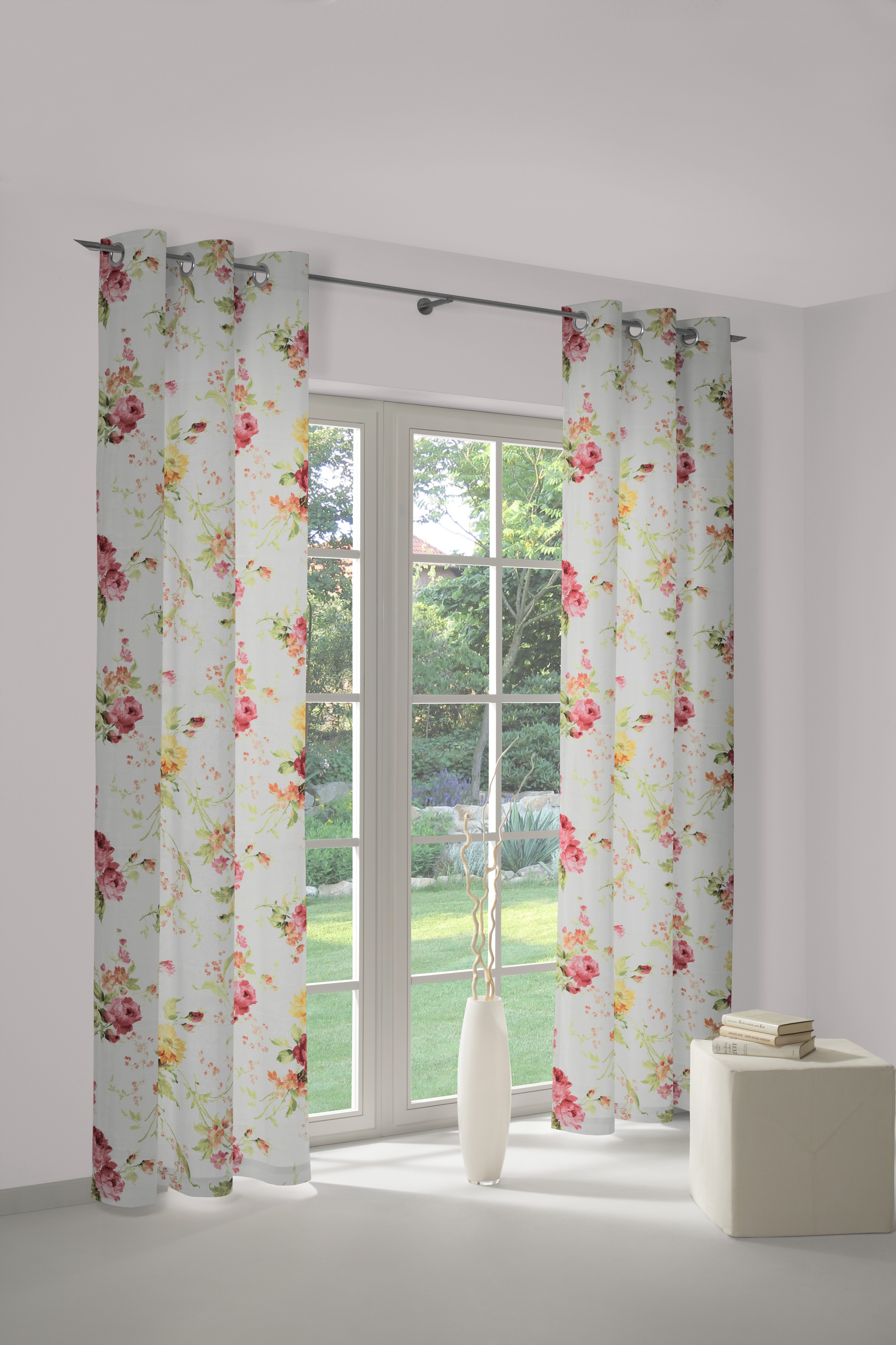 Hinweis Dekoration | Die angegebenen Maße sind Stoffmaße.;Am Fenster fertig dekoriert, reduziert sich die Breite um ca. die Hälfte. |