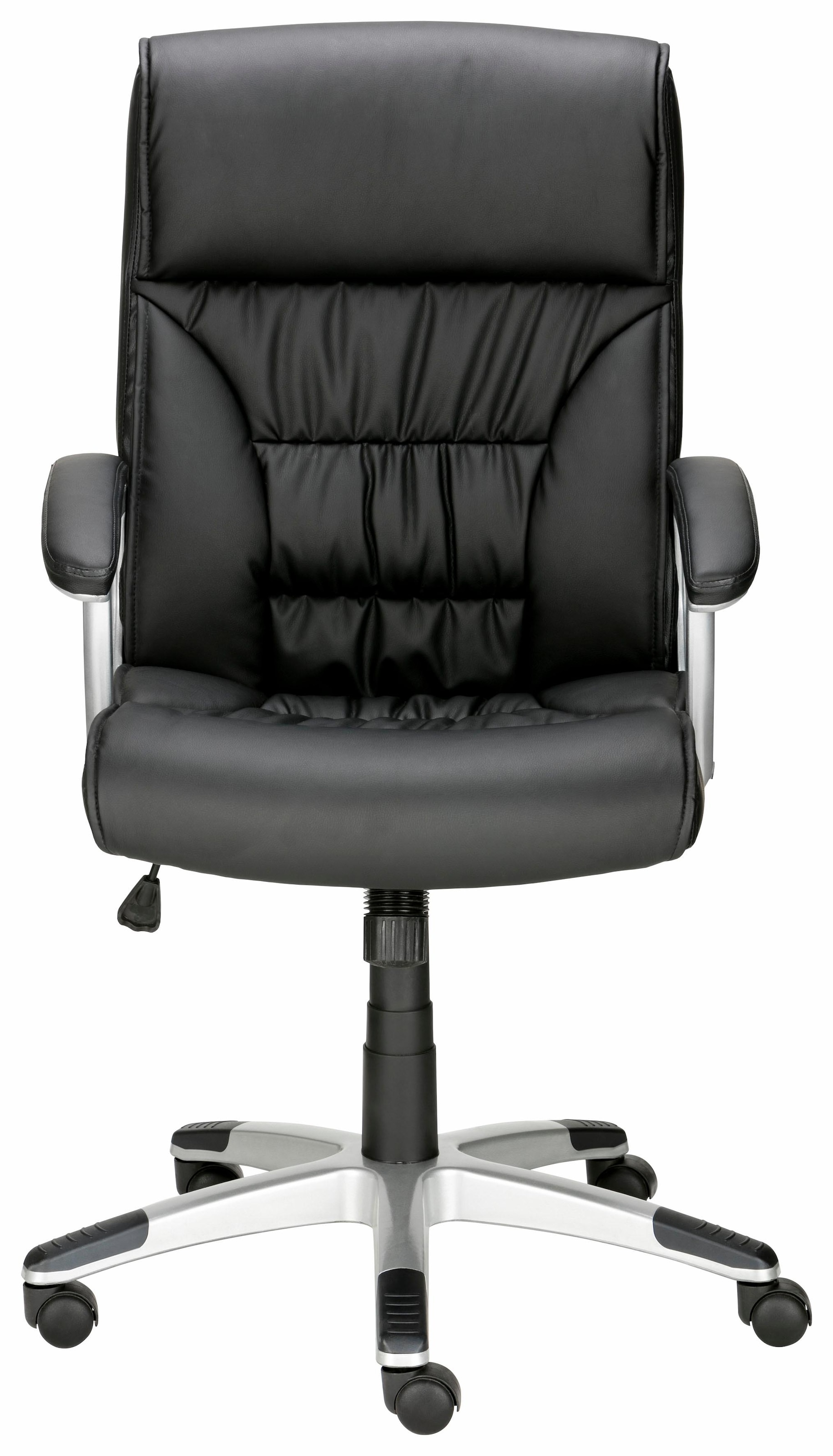 - Komfortables Sitzen durch einen pflegeleichten Kunstlederbezug, Armlehnen, Drehfunktion & Sitzhöhenverstellung