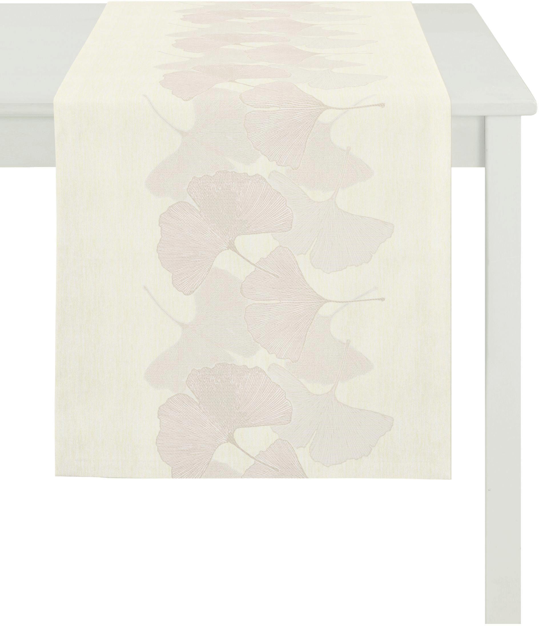 Apelt Tischläufer »2900 Loft Style«. Stimmungsvolles Motiv aus dem Hause Apelt. Hochwertiges Jacquardgewebe mit naturalistisch nachempfundenen und im Zen-Modus gestalteten Ginkoblättern für ein schönes Zuhause. Erstklassige Verarbeitung, als eleganter Läufer mit Briefecke genäht. Das pflegeleichte, hochwertige Material besteht aus 70% Polyester und 30% Viskose. Waschbar bei 30°C im Schonwaschgang. Die Produkte sind geprüft nach STANDARD 100 by OEKO-TEX® und made in Germany.