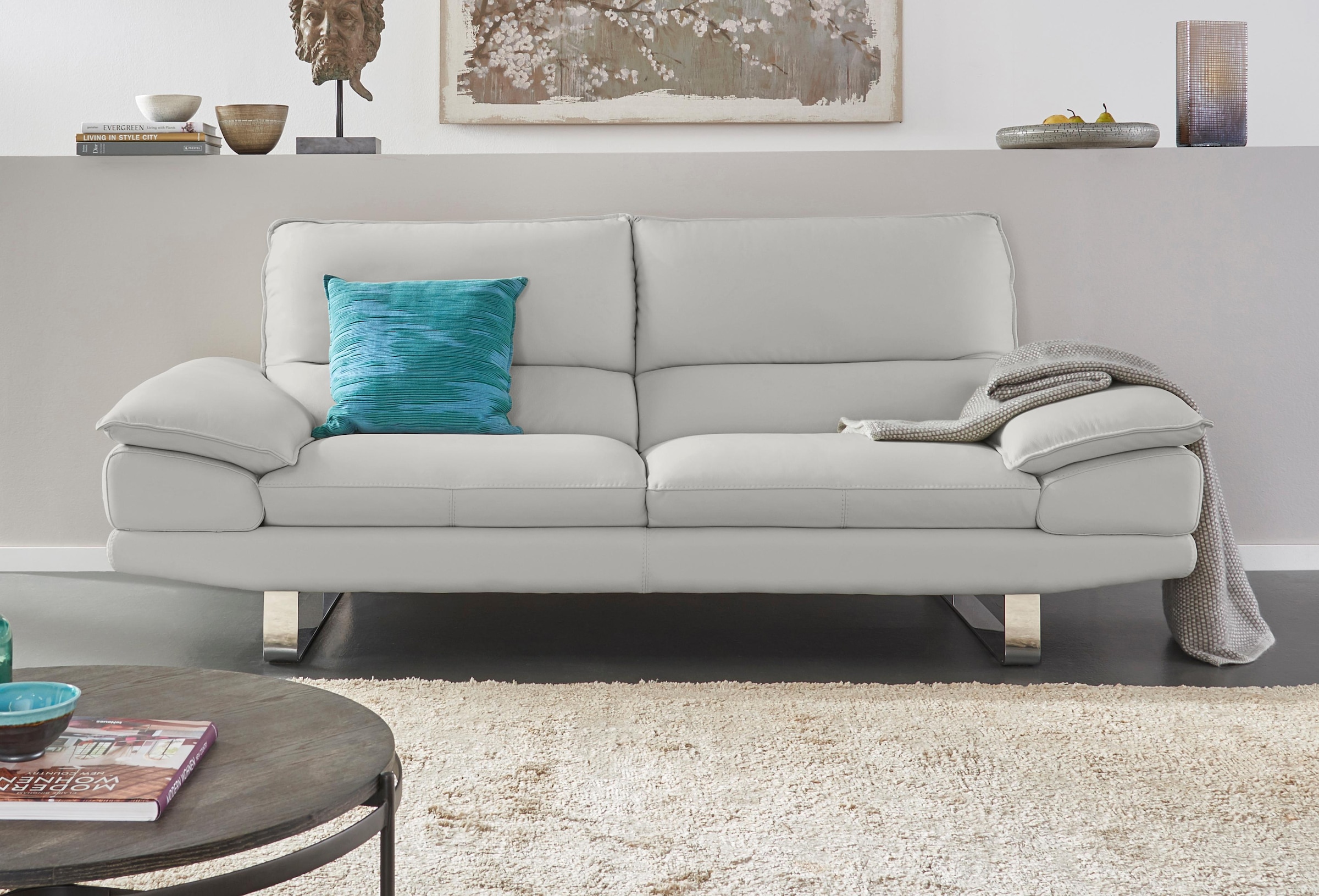Die Geschichte von CALIA ITALIA beginnt bei einem Mann, ihrem Gründer Liborio Vincenzo Calia, Schreinermeister mit einer Werkstatt. Der fing 1965 an in Matera Sitzmöbel zu schaffen. Ein Polstermöbel sollte, wie er immer wieder sagte, ein Möbel sein, auf dem man sich ausruhen kann, das zum Gespräch und zum Träumen einlädt. Um die Wende zwischen den 70er und den 80er Jahren überschreitet CALIA ITALIA die Schwelle vom Handwerksbetrieb zur Projektierung und Realisierung auf industrieller Ebene. Der 3-Sitzer »Dave« ist ein zeitlos schönes Ledersofa mit einer klaren Formensprache. Das Kufengestell in Chrom verleiht dem Sofa eine besondere, moderne Note. Mit seinem stabilen Holzuntergestell, einer besonders komfortablen Gummigurtunterfederung und einer atmungsaktiven Polyätherschaum-Polsterung sorgt es für beeindruckenden, legeren Sitzkomfort. Dolce Vita mit immenser Eleganz lässt das Polstersofa mit mediterraner Geschmackssicherheit im persönlichen Wohnzimmer entstehen. Als 3-Sitzer überzeugt dieses Sofa und bietet Raum für exklusive Gemütlichkeit. Leder BULL, ein dickes, mattes Leder mit sichtbaren Naturmerkmalen, und Leder SORRENTO, ein geschliffenes Rindsleder, pigmentiert und geprägt mit angenehm weichem Griff