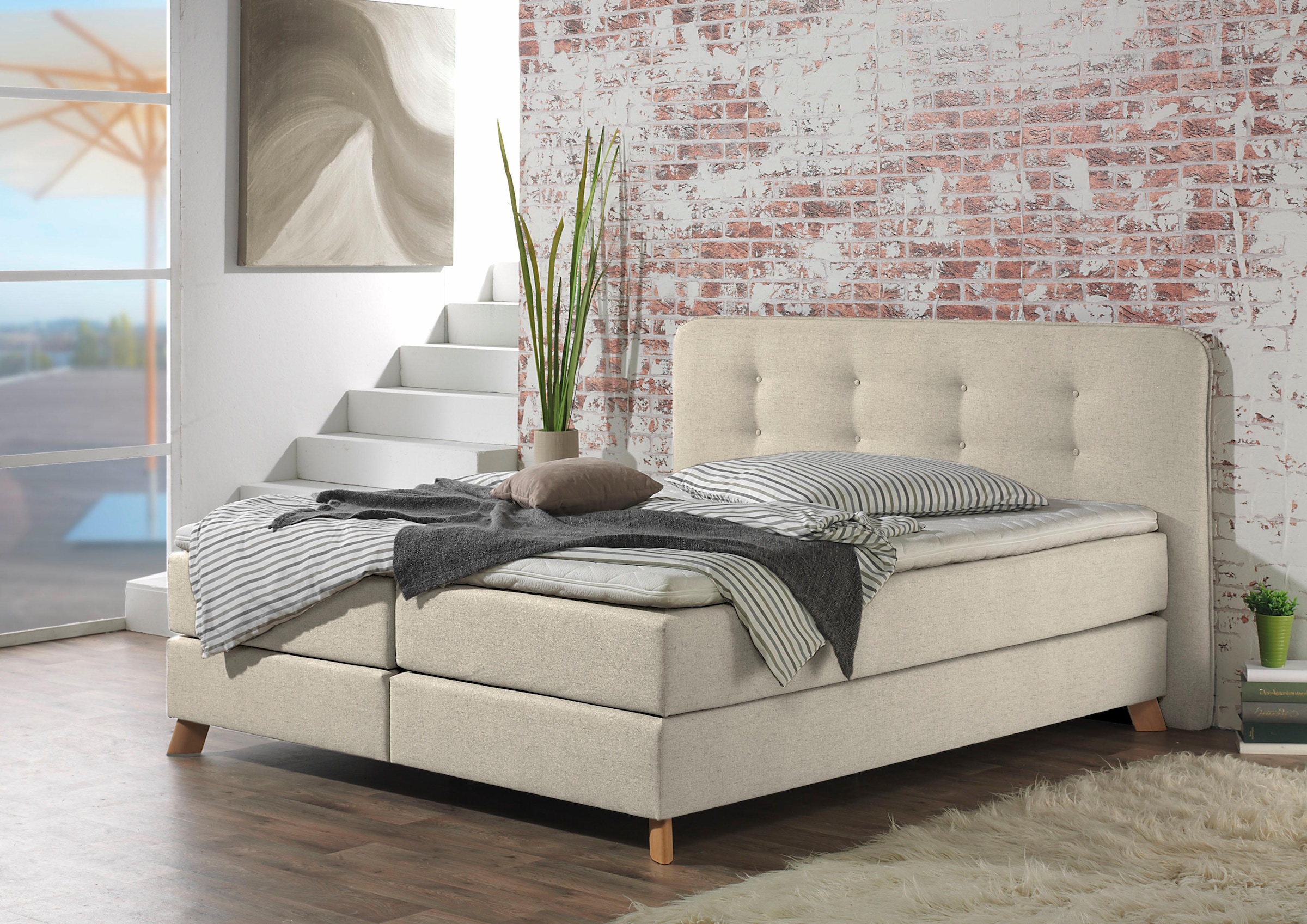 Home affaire Boxspringbett »Cecina« in 5 Breiten, 3 Ausführungen, 2 Härtegrade, Knopfheftung, Topper