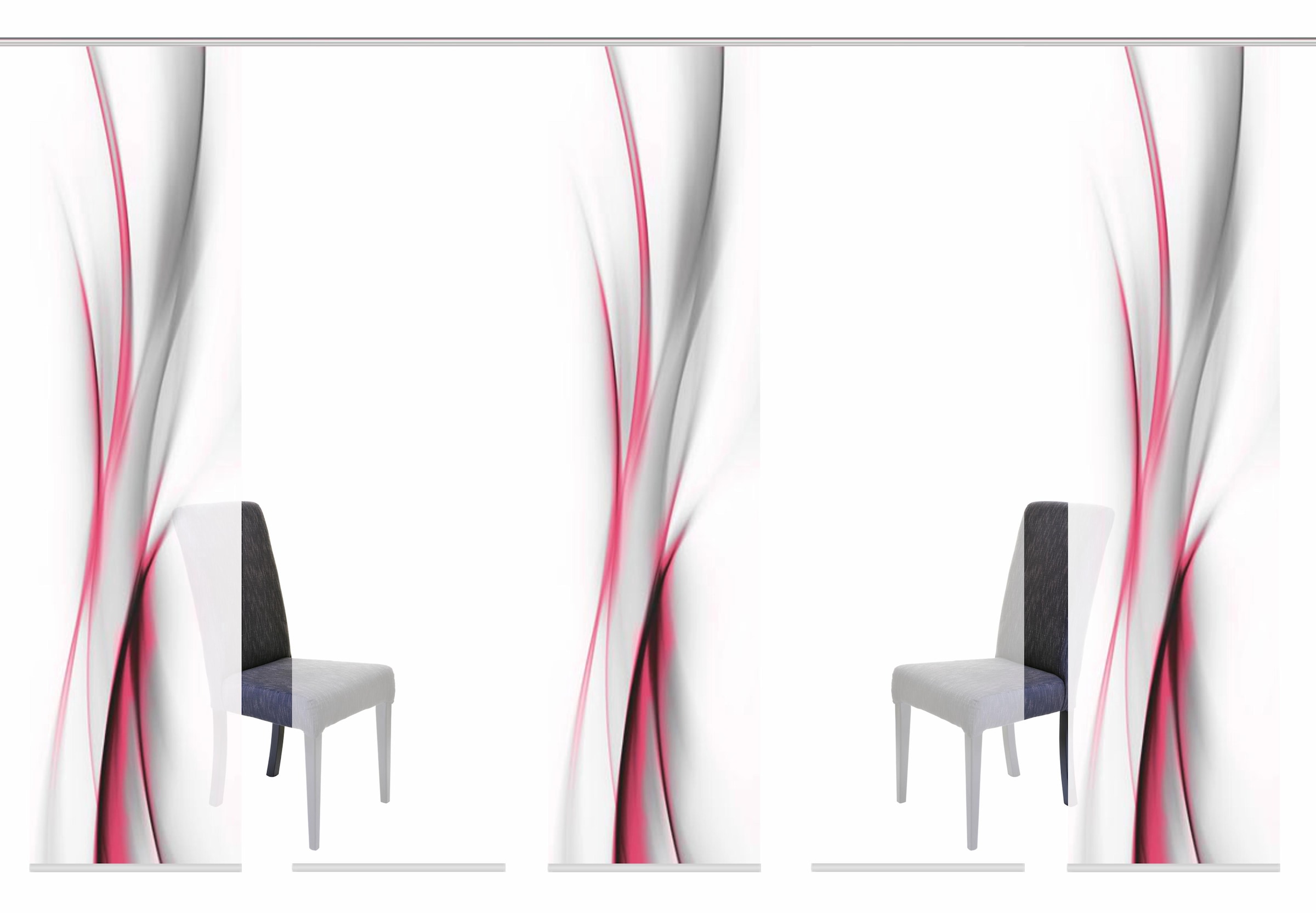 Schöne moderne SchiebevorhangSets der Marke HOME WOHNIDEEN. Die Schiebevorhänge bestehen aus 100% Polyester. Sie werden inkl. Paneelwagen und Klemmleiste geliefert. Sets können bestehen aus 3, 4, 5 oder 6 Schiebevorhängen, digitalbedruckte aber auch Unifarbene, blickdicht wie auch halbtransparent.