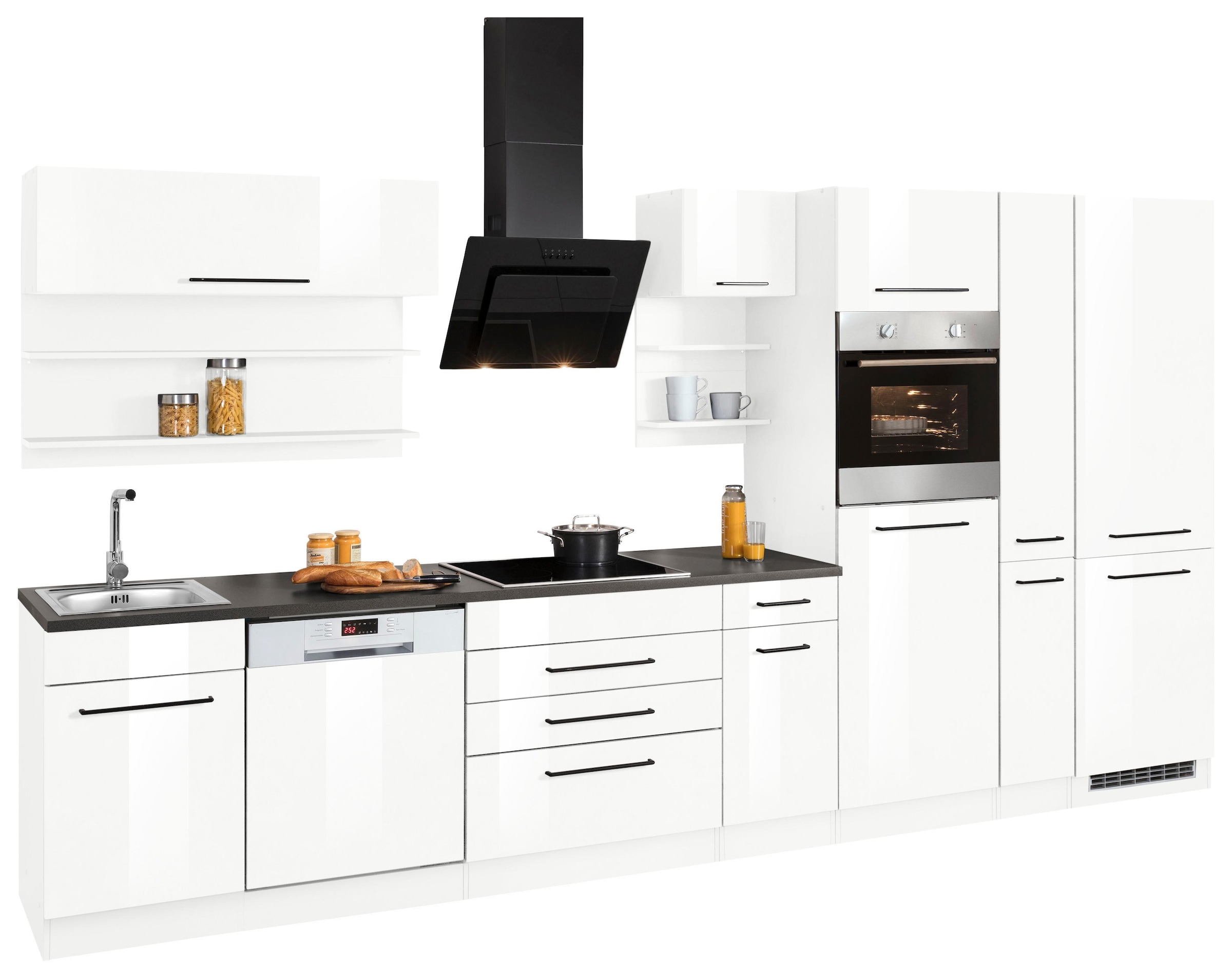 KOCHSTATION Küchenzeile »KS-Tulsa« Breite 160 cm, schwarze Metallgriffe, hochwertige MDF Fronten
