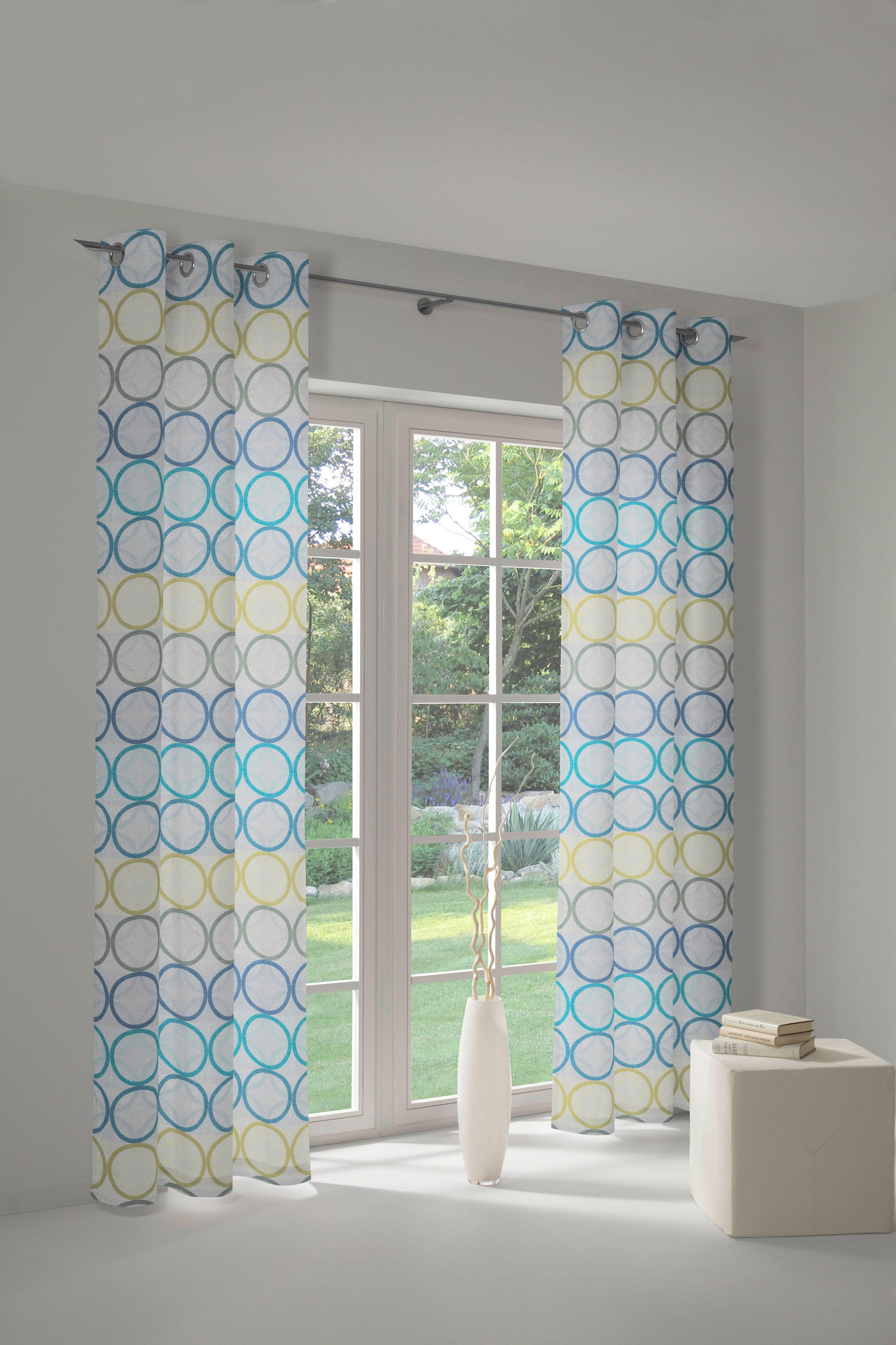 Mit dem modernen Artikel ZIRBELLO setzen Sie trendige Akzente in Ihrem Zuhause! Diese fertig konfektionierte Einzelschal mit Messingösen (Fb. chrom ,  Ø 4 cm) ist aus einem bunt gewebten Jacquard Dekostoff gefertigt. Bringen sie frischen Wind in Ihre Räume und entscheiden Sie sich für den trendigen Artikel ZIRBELLO. Um Ihre Dekoration abzurunden ist dieser Artikel auch als Kissenhülle, Tischwäsche und Schiebepaneele erhältlich. Bitte beachten Sie, Aufgrund von Bildschirmeinstellungen kann die tatsächliche Farbe variieren!