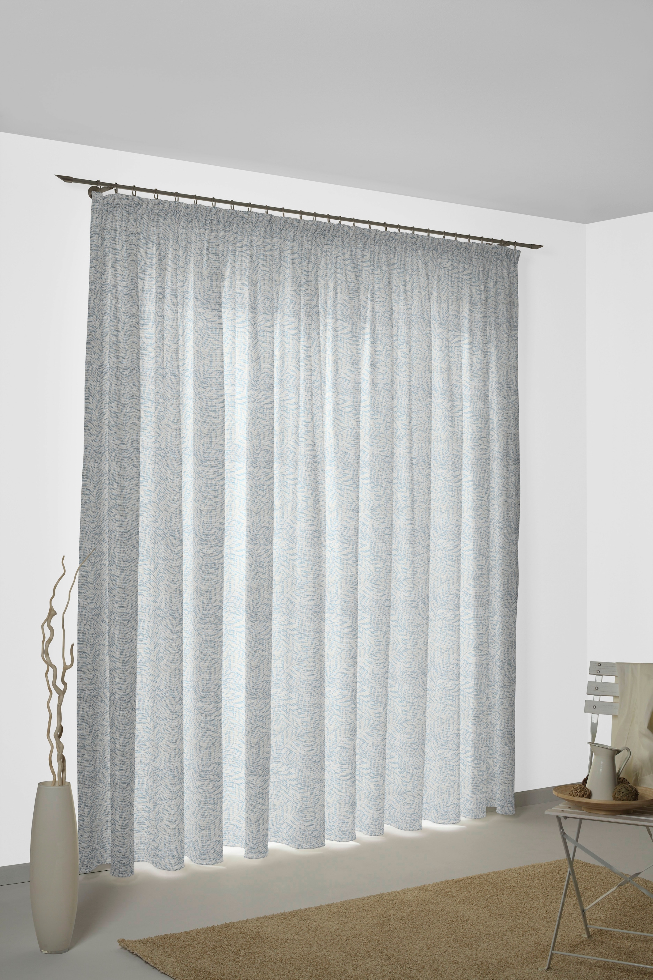 Hinweis Dekoration | Die angegebenen Maße sind Stoffmaße.;Am Fenster fertig dekoriert, reduziert sich die Breite um ca. die Hälfte. |