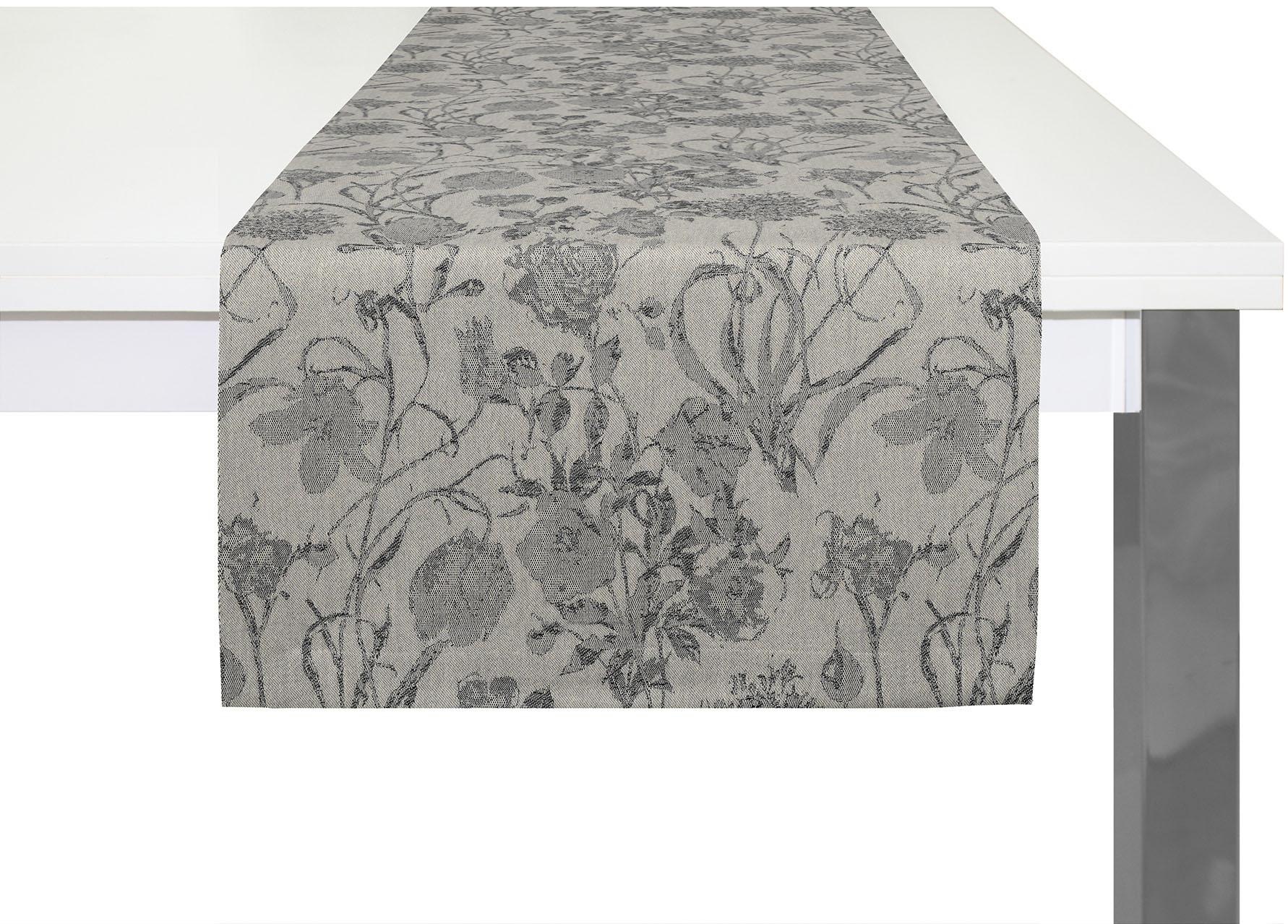 Tischläufer "Flower Cuvée Light" aus 100% GOTS-Bio-Baumwolle. Helles Jacquard-Design und pflegeleicht - für elegante Tischdekoration.