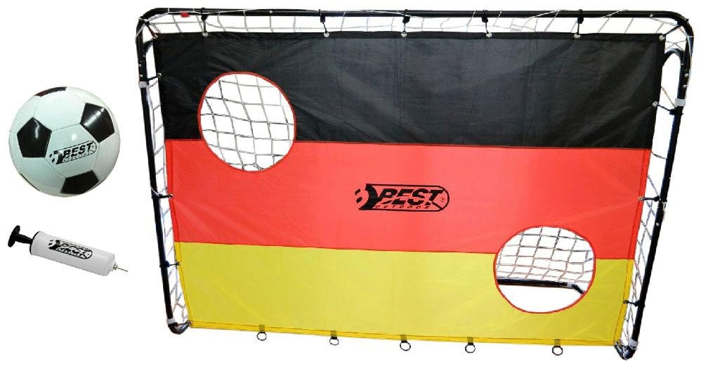 Mit dem 4-teiligen »Fußballtor Set Deutschland« von Best Sporting holt man sich die WM schon jetzt in den Garten! Die Torwand in Deutschland-Design ist extra mit 2 verstärkten Schusslöchern für optimale Trainingsziele ausgestattet. Mit diesem Set kommt die Vorfreude schon heute nach Hause.