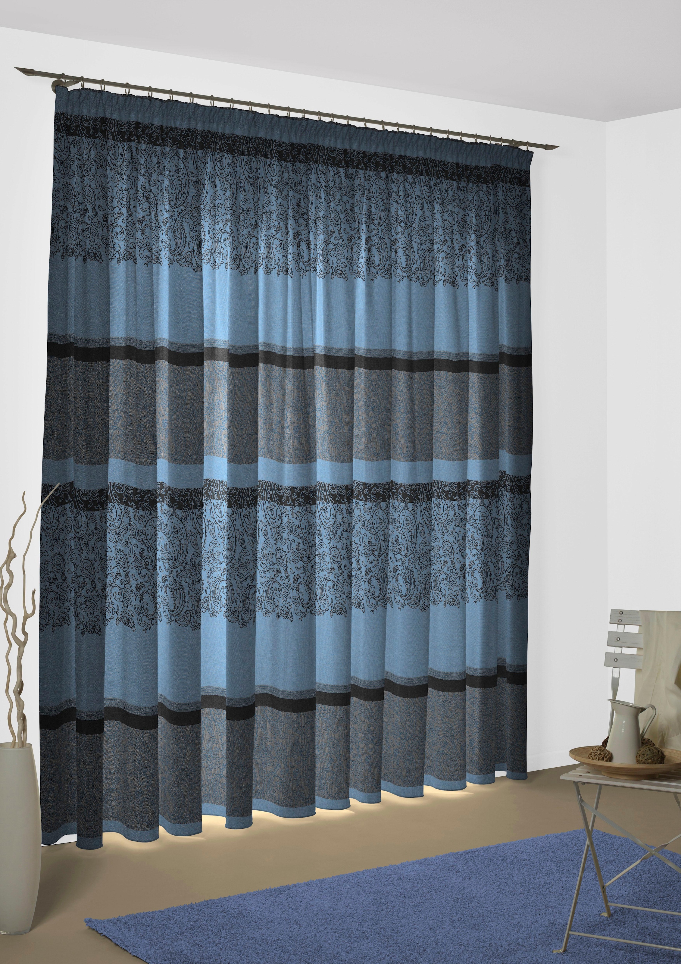 Hinweis Dekoration | Die angegebenen Maße sind die fertig dekorierten Maße.;Eine Schiebegardine ist eine schmale, glatt hängende Stoffbahn, die sich sowohl als Sichtschutz als auch zur Raumteilung eignet. Durch die Schiebetechnik sind Schiebegardinen sehr flexibel einsetzbar. |