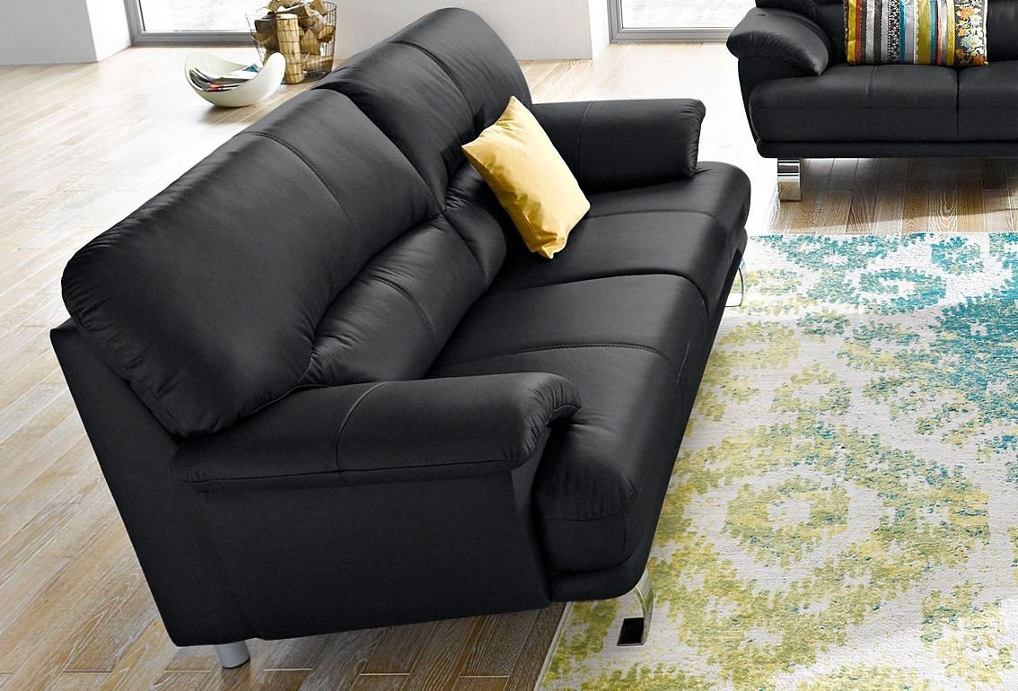 Gemütliches Polsterprogramm zum Relaxen für die ganze Familie. Mit schicken Chromfüßen und flachen Armlehnen.