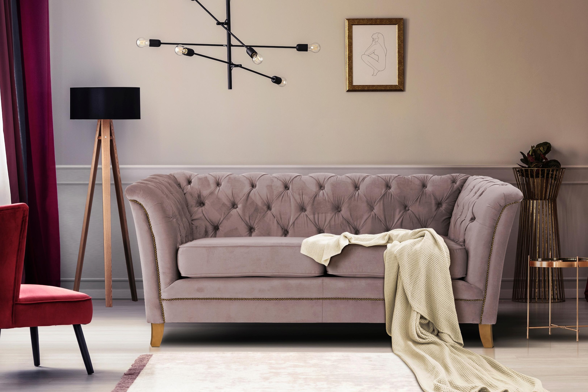Home affaire 2-Sitzer »Newport« mit Knopfheftung im Rücken, Keder und feinen Armlehnen