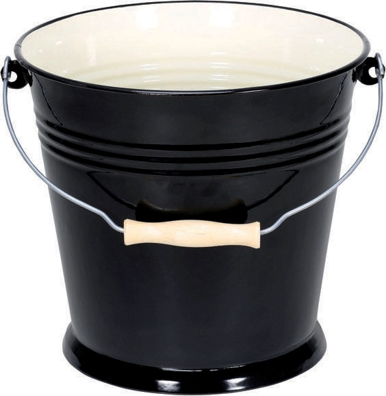 Krüger Eimer »Triest« aus weißem Emaille innen, außen schwarz. Mit hochwertiger weißer Keramik-Versiegelung und Edelstahlgriff. Schwere Ausführung, robust und langlebig. Inhalt 10 Liter. Maße: H: 27, Ø 28 cm.