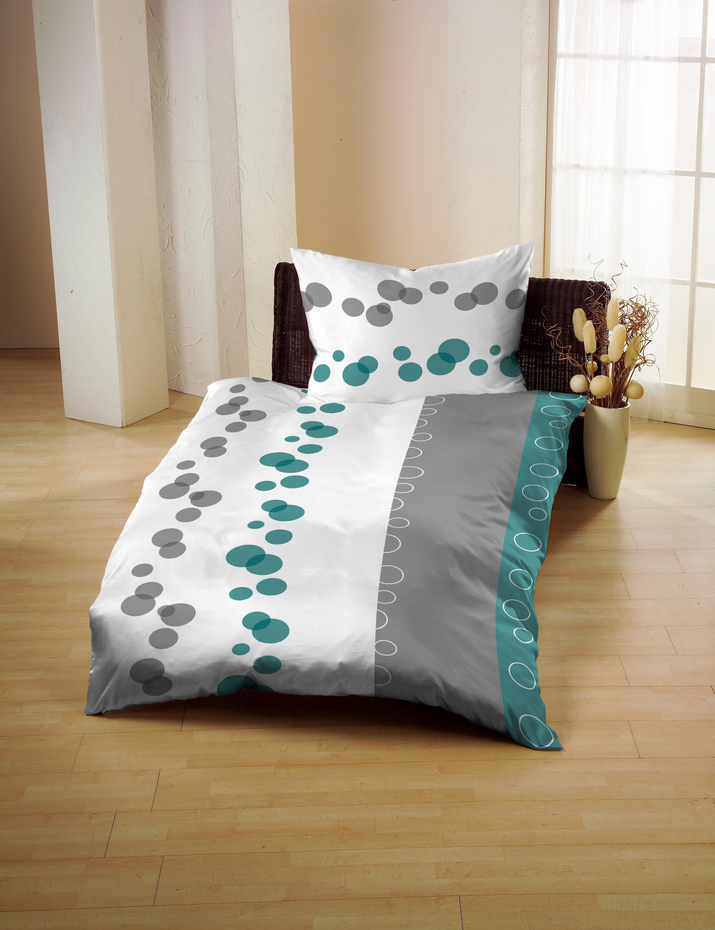 Ein absolutes Schmuckstück ist diese feine Bettwäsche, die mit tollen Punkten und Streifen verziert ist und die Garnitur dadurch besonders effektvoll wirken lässt. Das hochwertige Mako-Satin Material aus 100% Baumwolle unterstützt diesen Effekt noch.