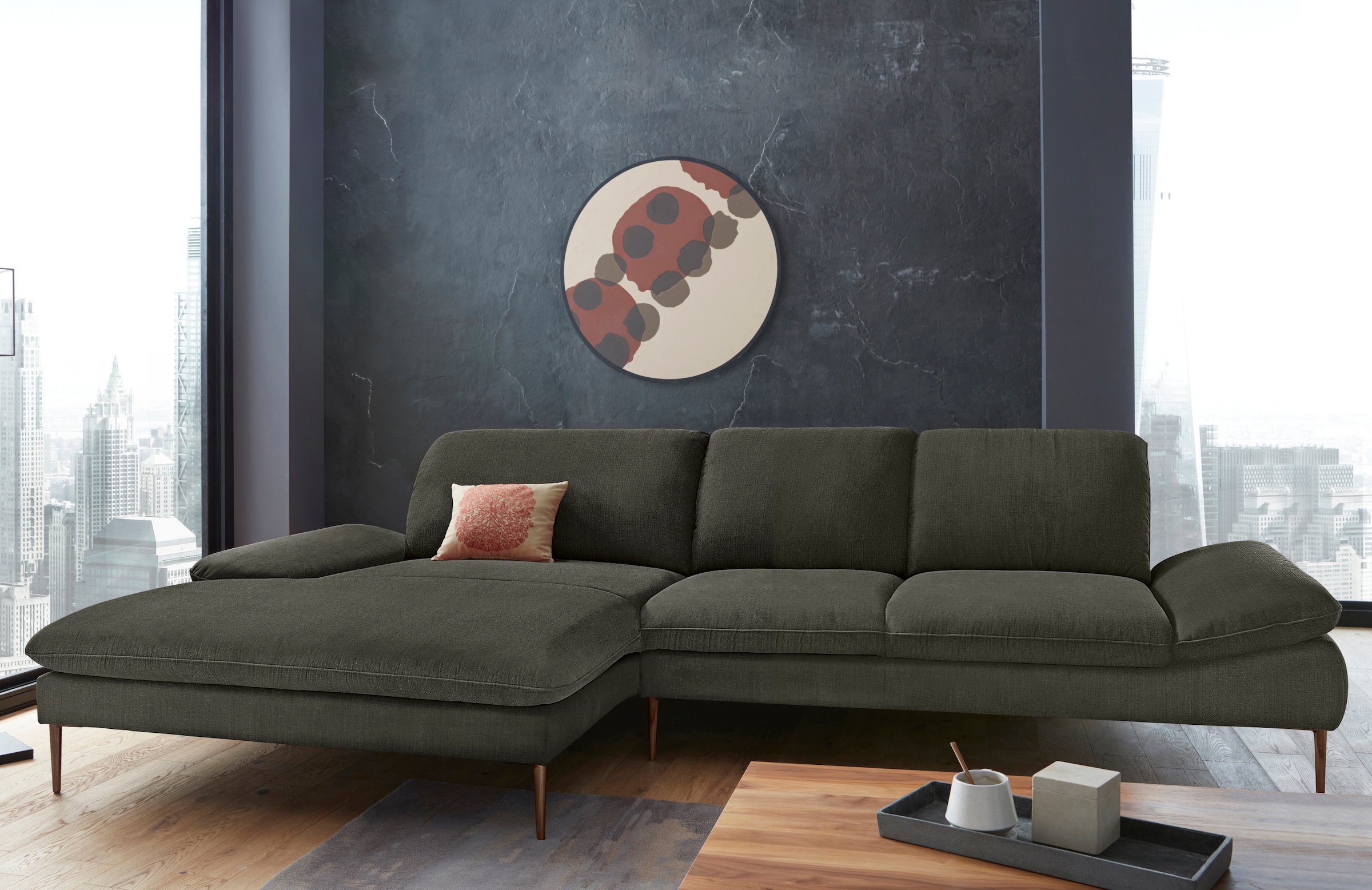 - Bequemes Ecksofa mit schmalem Metallfuß in Schwarz pulverbeschichtet