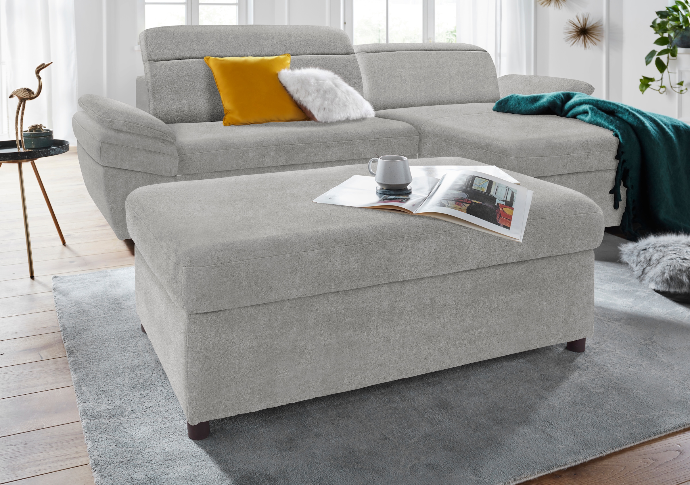 Attraktiv und praktisch zugleich ist der Hocker mit Stauraum aus der Kollektion von exxpo - sofa fashion. Geradlinig und mit ansprechendem Bezugsstoff designt, bereichert er das Zuhause. Erhältlich ist das Sitzmöbel in mehreren Bezugsqualitäten. Für den gemütlichen Sitzkomfort sorgt die Wellenunterfederung im Zusammenspiel mit der atmungsaktiven Schaumpolsterung. Unter der abnehmbaren Sitzfläche bietet der Sitzhocker ein nützliches Stauraumfach, in dem verschiedene Dinge des Alltags ihren ordentlichen Platz erhalten. Stellbar ist der Polsterhocker frei im Raum, als Teil der Couchgarnitur oder vor dem Lieblingssessel zum Ausruhen müder Beine. Er ist hochwertig verarbeitet aus FSC®-zertifiziertem Holzwerkstoff.