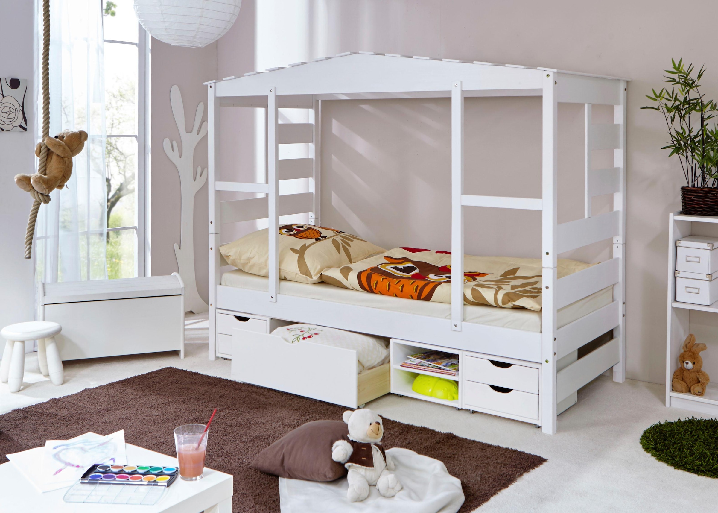 Ticaa Kinderbett »Lio« Hausbett, inkl. Schubkasten und Rollrost